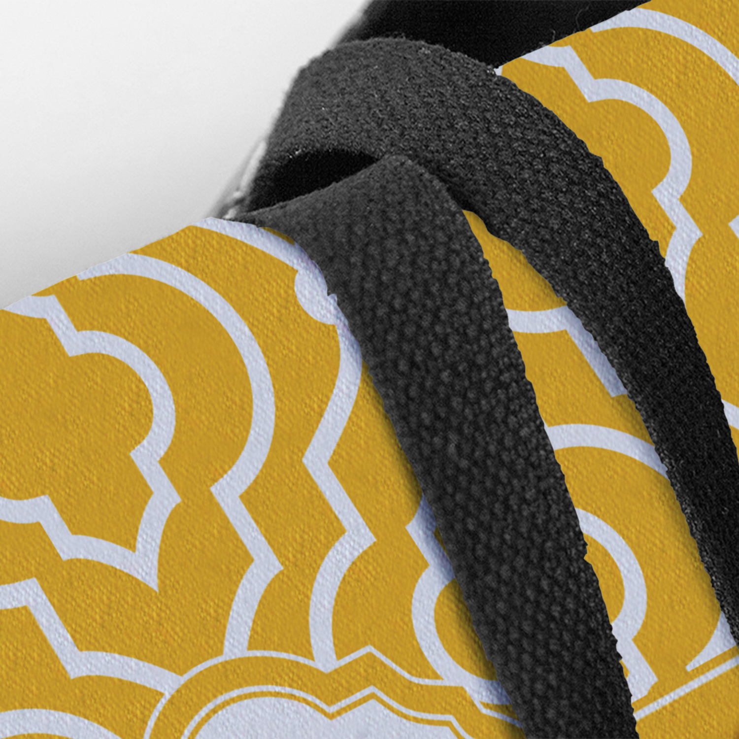 The totes are made from a sturdy canvas material on the outside and are lined with a black poly cotton lining. The beach totes have an approx. 28" black woven handles.