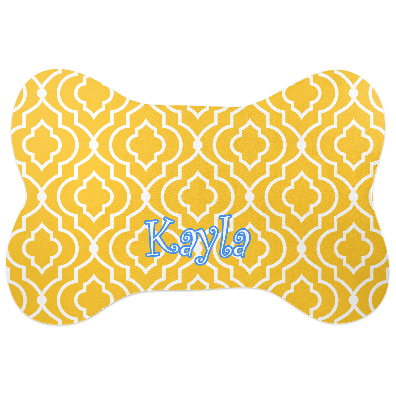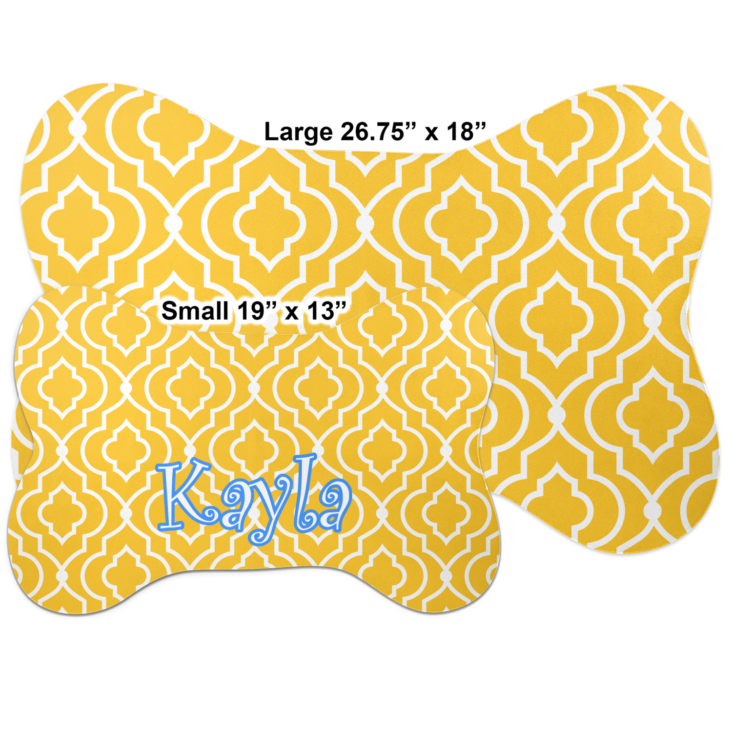 The bone-shaped dog bowl mat is the perfect way to add a touch of personality to your dog's eating area! Dogs make inevitable messes, especially when they eat and drink. Save the integrity of your floors and the time spent cleaning them by purchasing a personalized mat that catches spills!