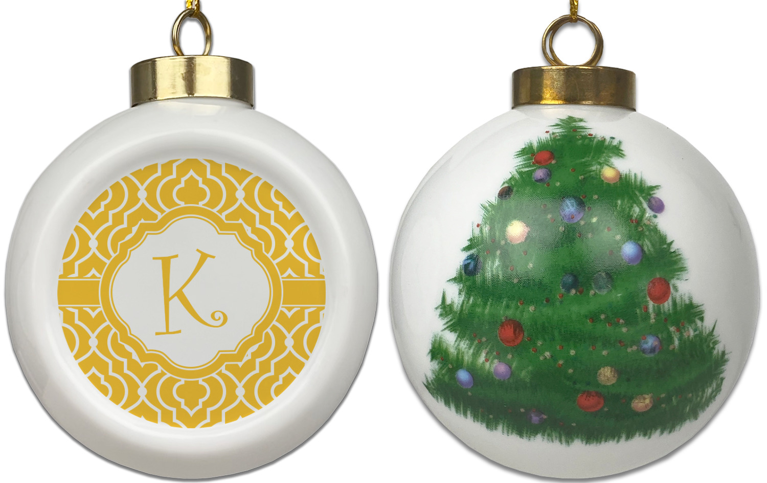 Our Christmas ornaments are a unique ceramic ball shape with a twist as it has a flat face to display your custom design! Select from one of our two design types - Christmas Tree or Poinsettia Garland - to adorn the curved back of your personal design. Each ornament measures 3H x 2.5W x 2D accompanied with a gold string accent for finishing touches to hang on your beautiful Christmas tree!