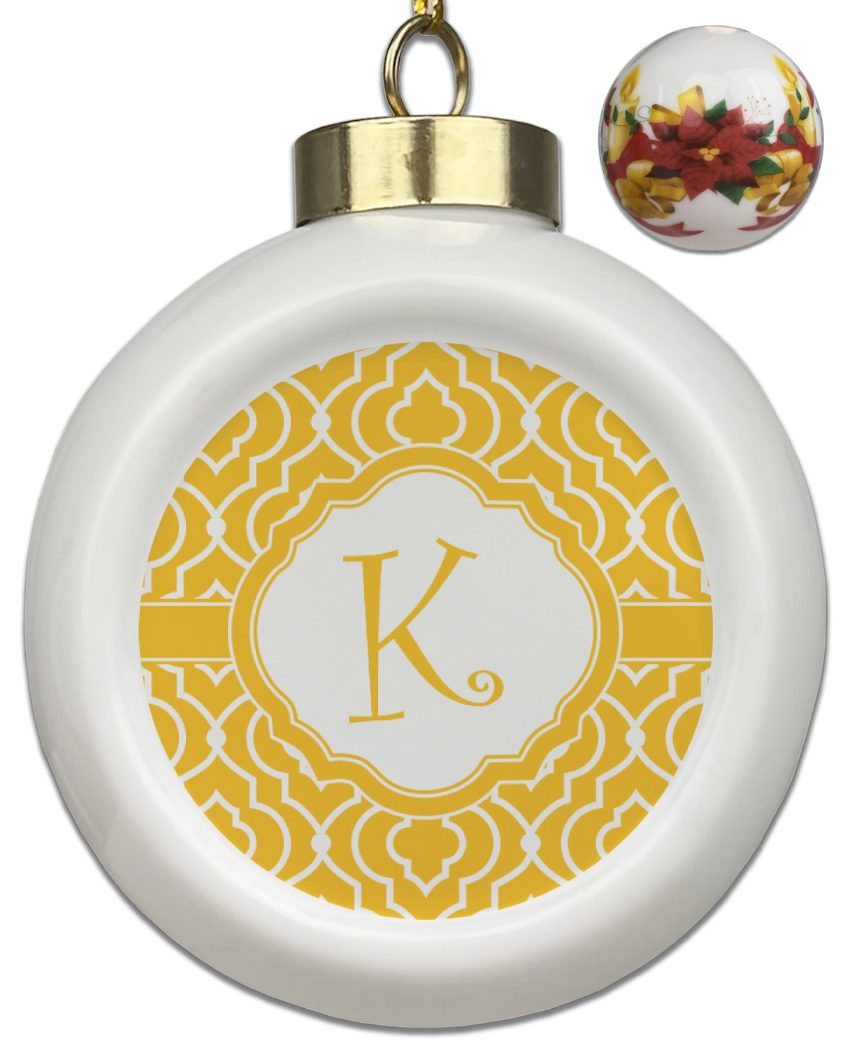 Our Christmas ornaments are a unique ceramic ball shape with a twist as it has a flat face to display your custom design! Select from one of our two design types - Christmas Tree or Poinsettia Garland - to adorn the curved back of your personal design. Each ornament measures 3H x 2.5W x 2D accompanied with a gold string accent for finishing touches to hang on your beautiful Christmas tree!
