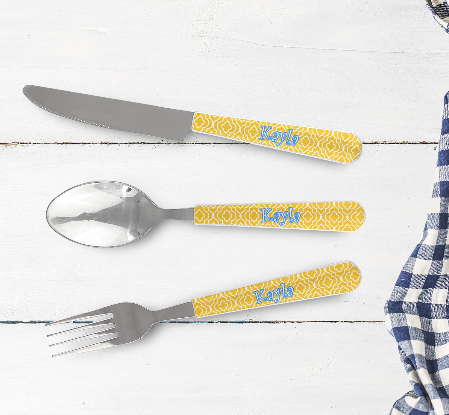 One of those items we all use on a daily basis and never give it much thought - cutlery. Having your own customized set of cutlery adds that special touch. A great addition to our custom plates and drinking pint glasses, this flatware set can be made in the same patterns to match.