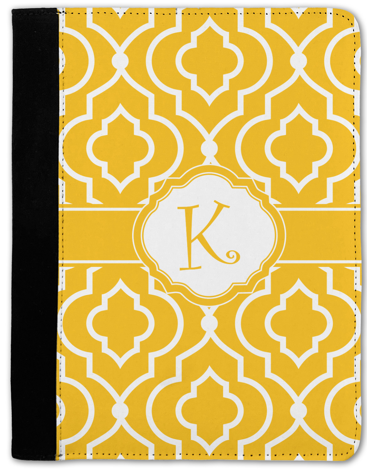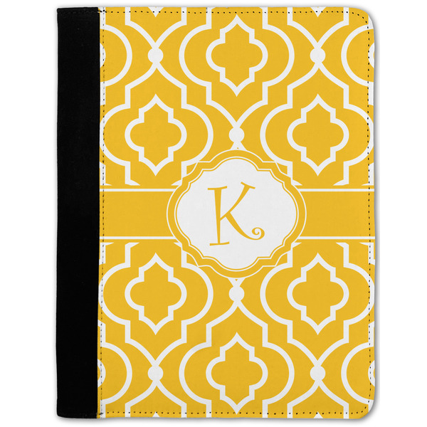 These personalized padfolios are made from a black, polyester microfiber and features a standard, 50-page notepad. However, these black padfolios can accommodate a pad with up to 100 pages. This model also features a slot pocket for any loose sheets of paper, small pockets for business cards, and an elastic band to secure a pen. We print your personalization across the front of this notepad portfolio in bright, vibrant color. These padfolios come in 2 sizes, Medium - approximately 10.25" x 8" for 5" x 8" paper and Large - approximately 12.5" x 8.5" for 8.5" x 11" paper.