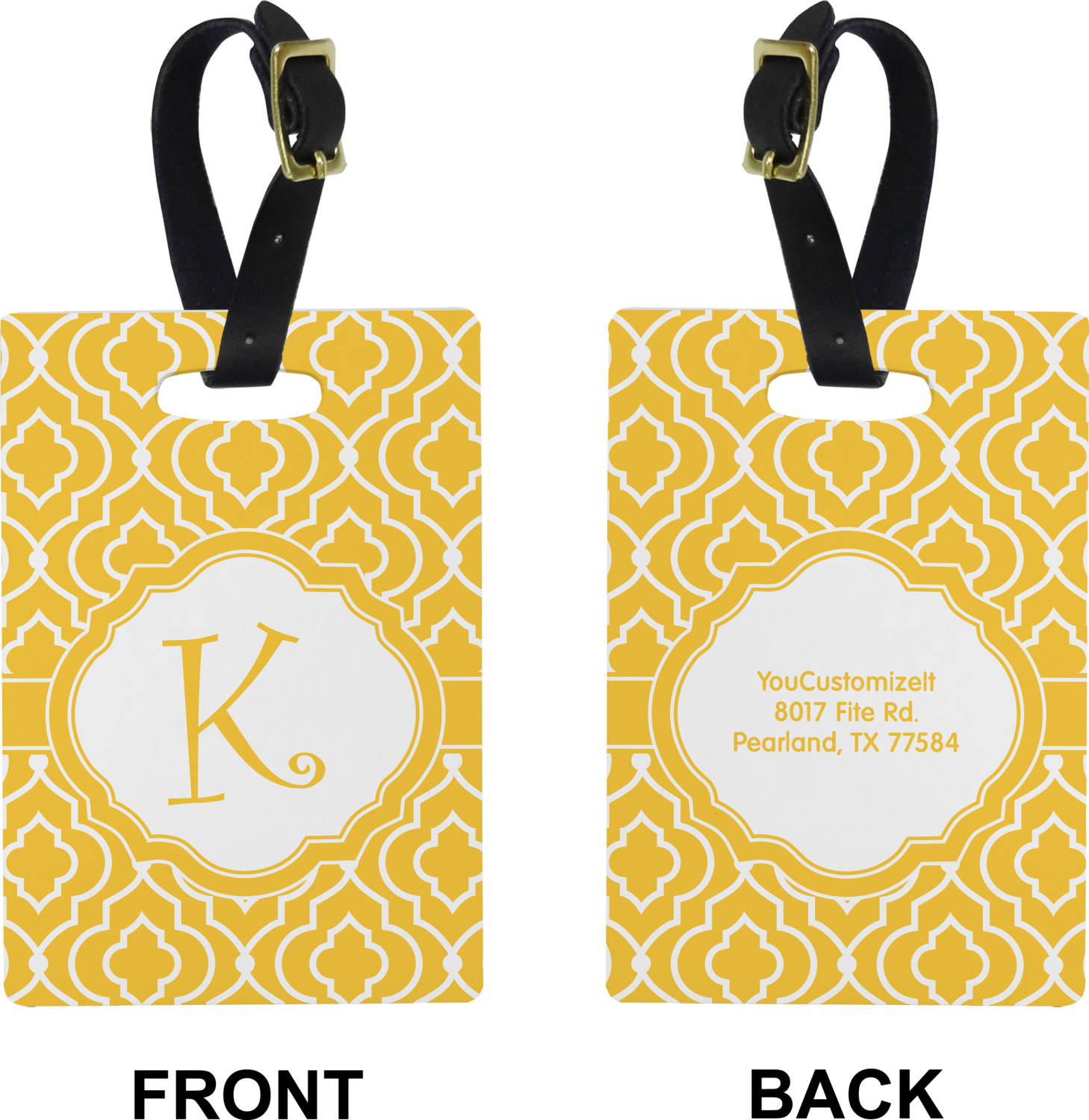 These cute luggage tags are made of a fiber-reinforced, UV-resistant plastic, making them waterproof and durable enough for both everyday use and the rugged adventures of any traveler! A leather strap with holes and a buckle is included with your purchase and can be used to attach your custom luggage tag to any suitcase, backpack, or duffel bag. You can design these travel tags as you wish; your customization will be displayed across the front, while the back will show as little or as much personal information as you want.