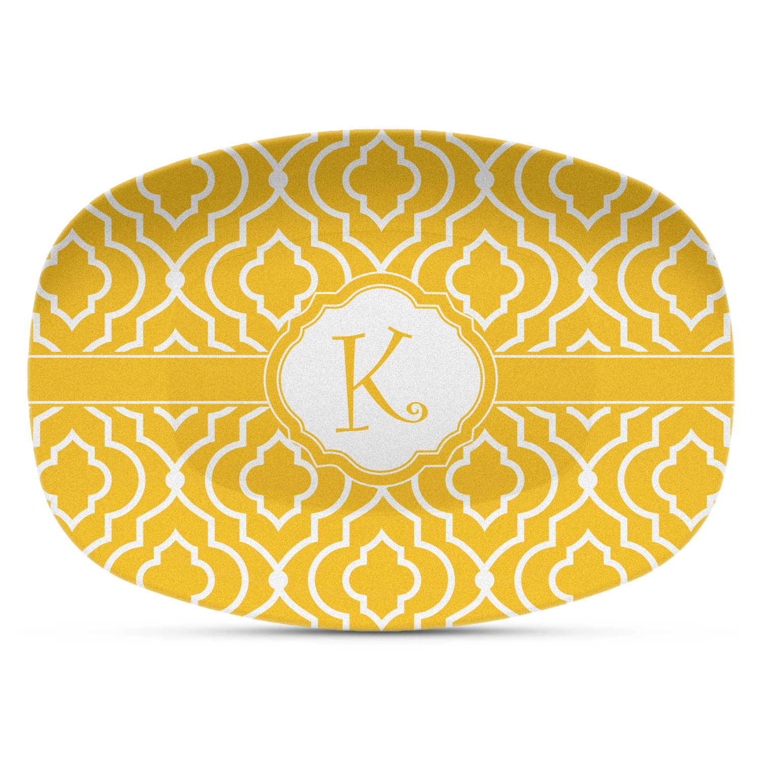 These serving platters are made from a composite, thermo-set, polymer plastic that gives it the versatility, durability, and weight of a melamine platter, without any of the downsides of melamine. These personalized platters, can withstand temperatures up to 250 degrees Fahrenheit, for up to 60 minutes. No harmful chemicals, such as BPA, formaldehyde, and DEHPs were used in the manufacturing of this product. This large serving platter measures at 14" x 10.25", and is spacious enough to hold any of your appetizers or bite-sized desserts. The platter exhibits your personalization across the entirety of its front.