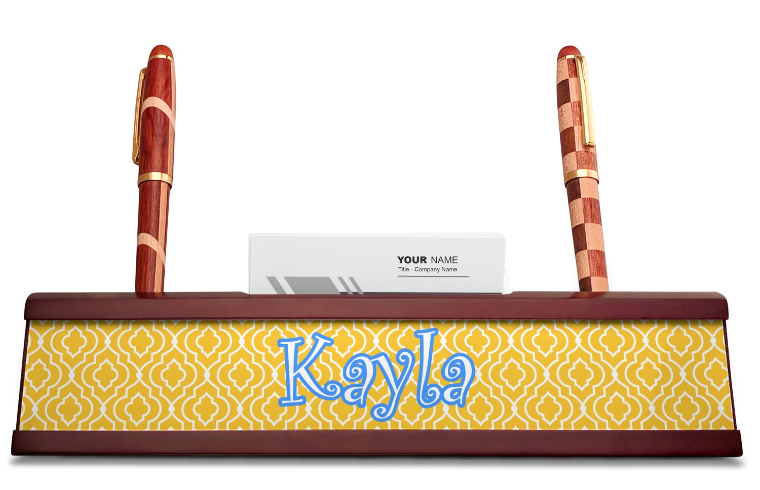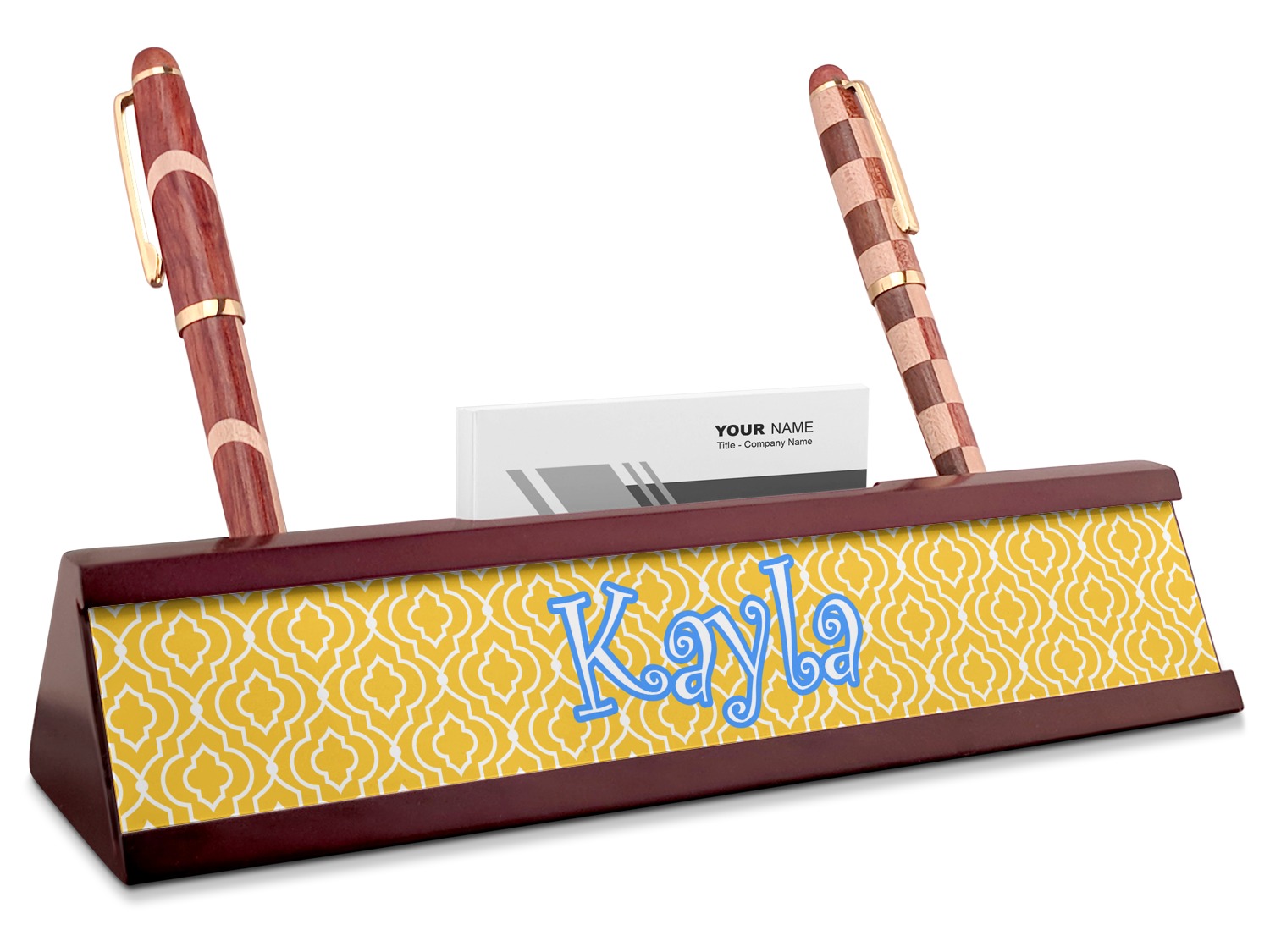 Add a sophisticated touch to your workspace with one of our name plates! These desk plaques even include a suave business card holder that will be sure to impress all of your clients!
