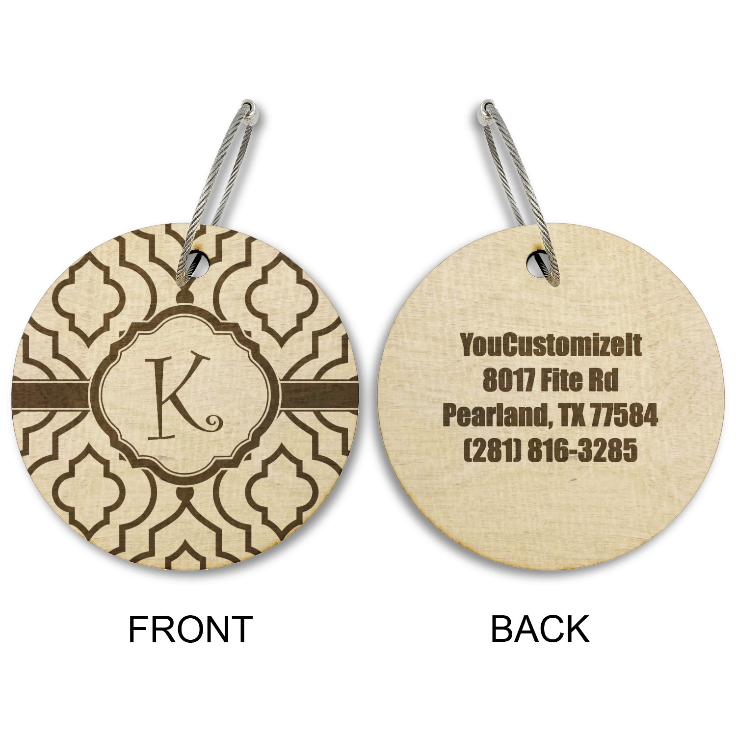 Made from a premium hardwood, these luggage tags are laser engraved and cut just for you. The front contains your design of choice and the back has your contact information to ensure your luggage gets back to you if ever lost.