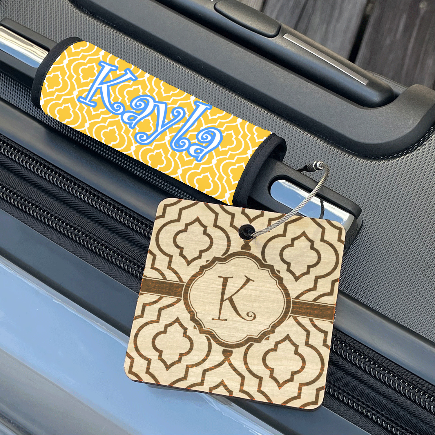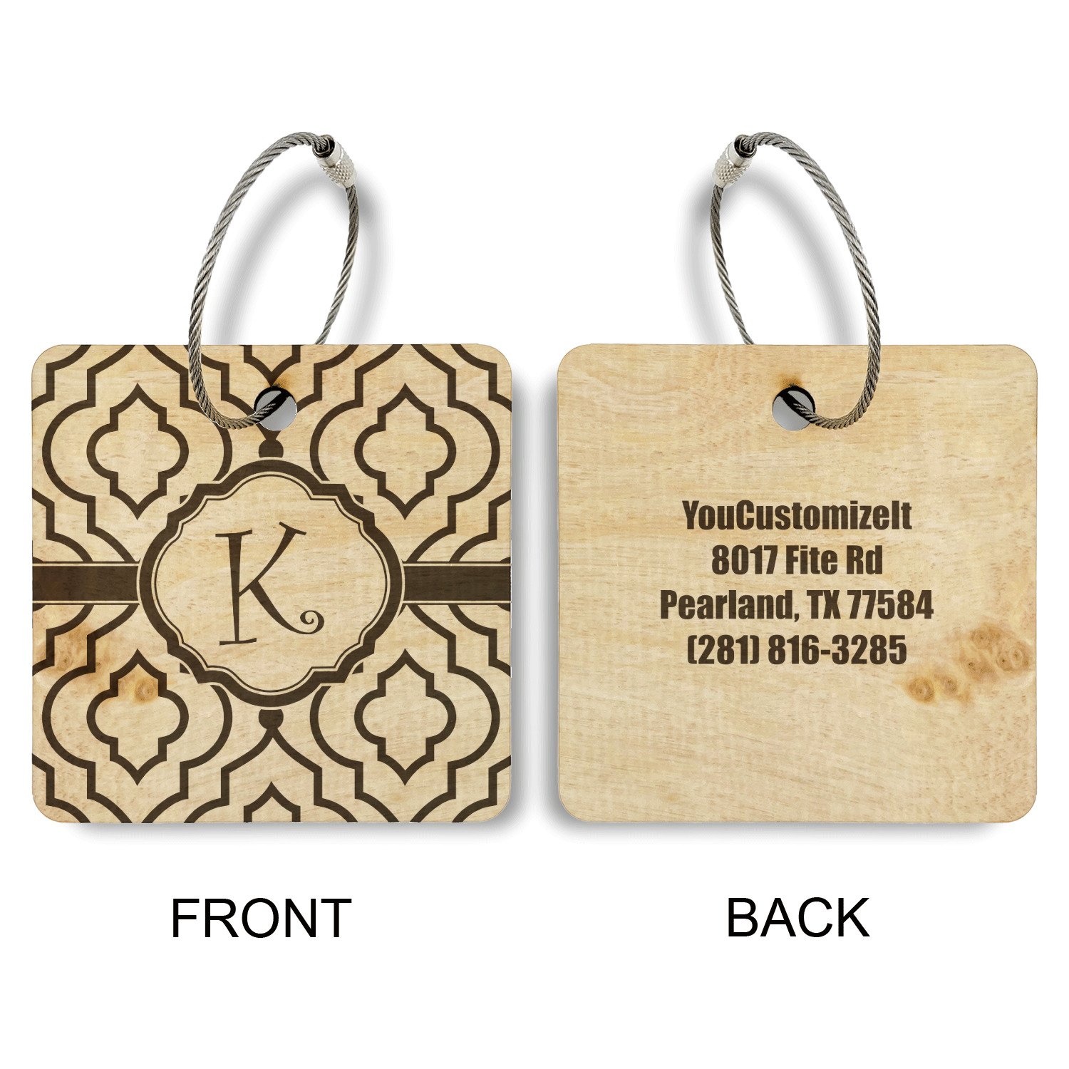 Made from a premium hardwood, these luggage tags are laser engraved and cut just for you. The front contains your design of choice and the back has your contact information to ensure your luggage gets back to you if ever lost.