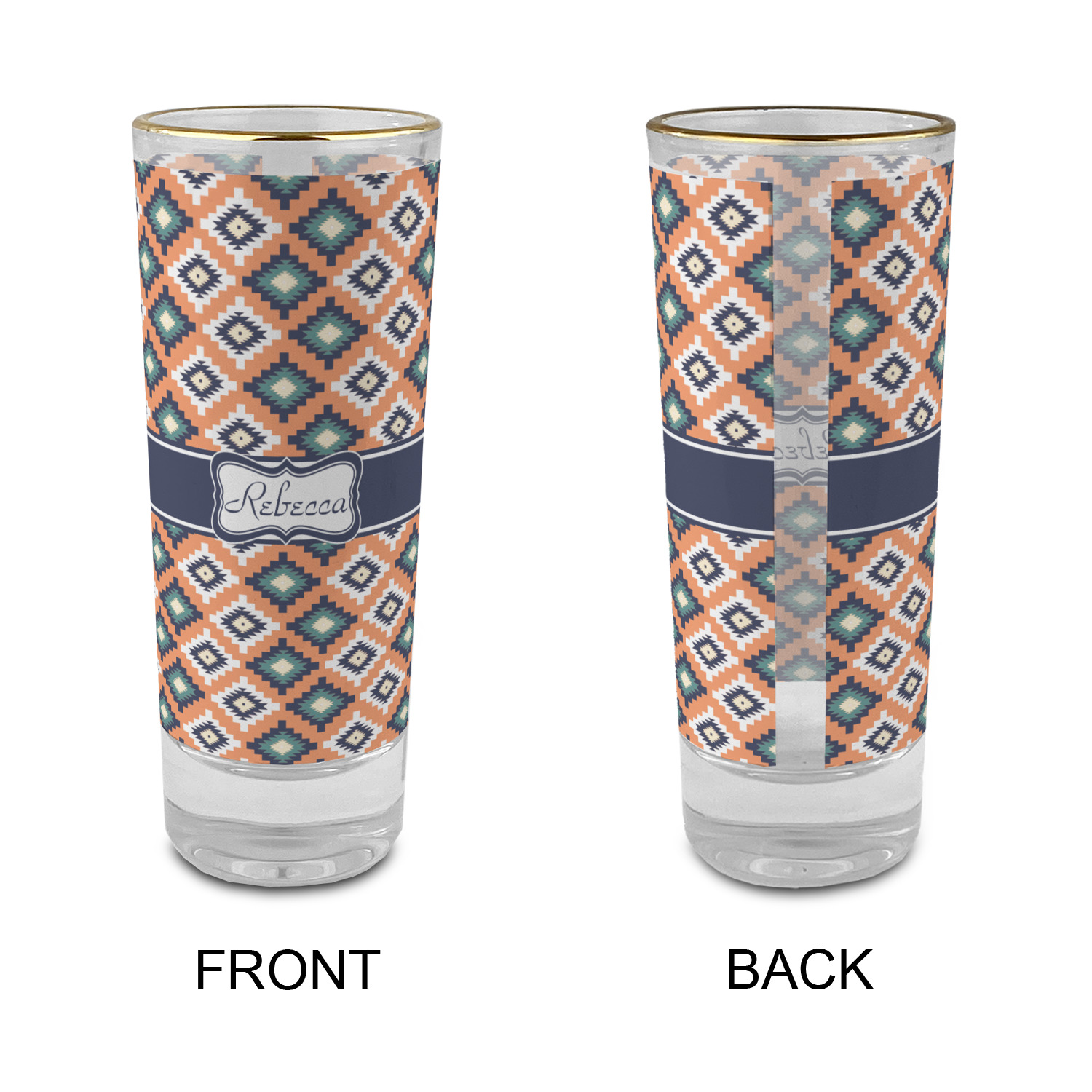 These glass shooter glasses are printed in full color with the design of your choice. These are a tall shooter 2 oz size and stand 4" tall. The print is a full wrap design to boldly display your personalization.