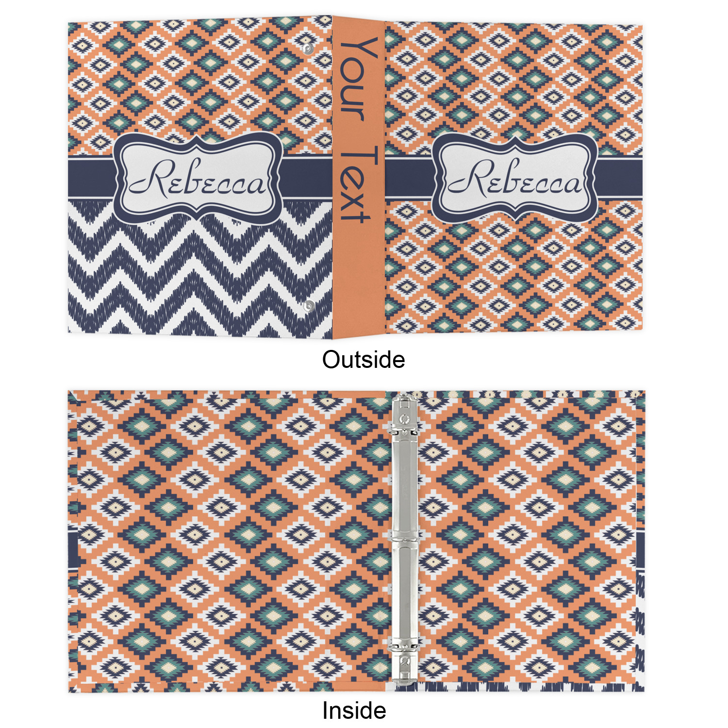 Made from a sturdy cardboard base with a full high quality canvas textured vinyl wrap with the design of your choice. Unlike our standard 3-ring binder with the full wrap design your artwork wraps from the front and back and into the inside of the binder.