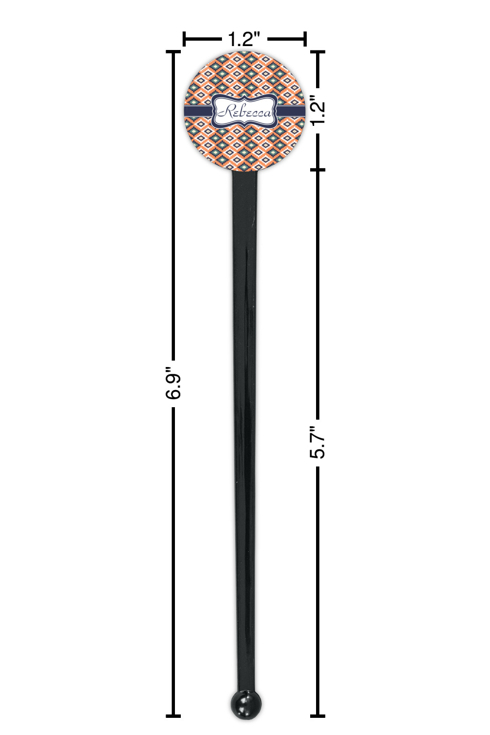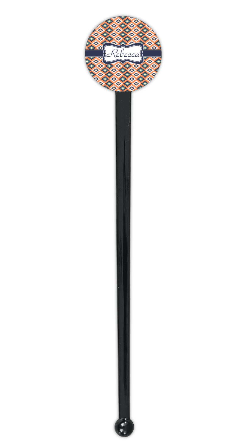 Shape + Symbol Designs for 7" Round Plastic Stir Sticks - Black - Single-Sided