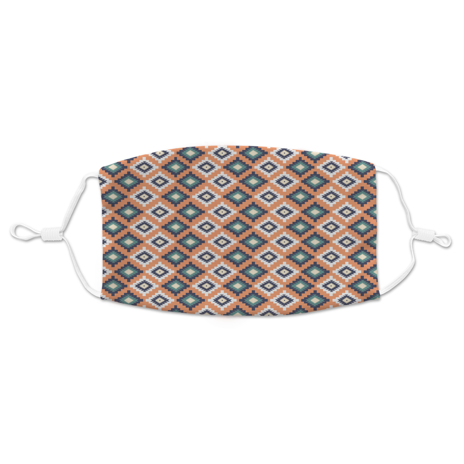 This fun, tribal design features stitched diamonds in cream and blue, scattered across a pale orange background. The effect is rather mesmerizing.