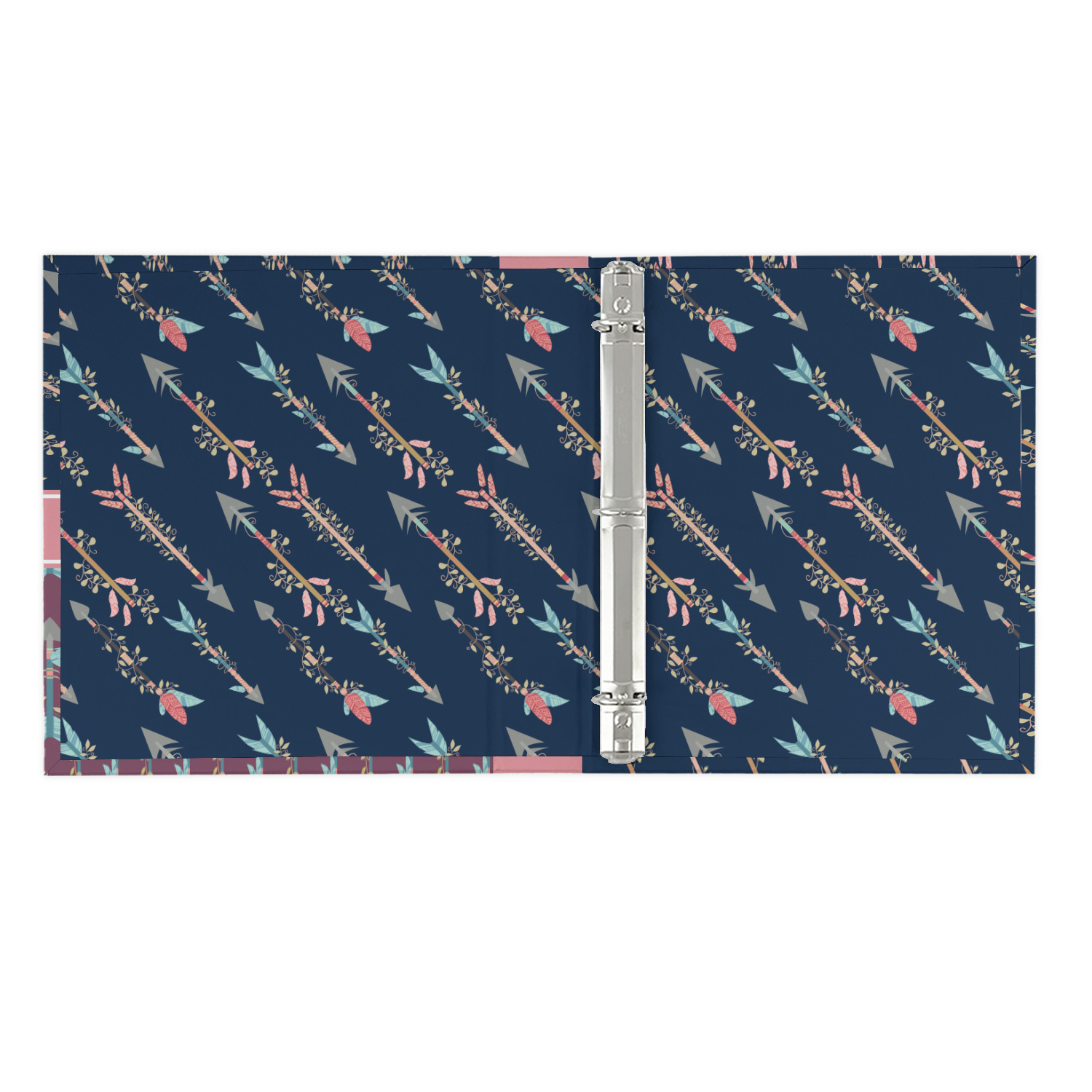 Made from a sturdy cardboard base with a full high quality canvas textured vinyl wrap with the design of your choice. Unlike our standard 3-ring binder with the full wrap design your artwork wraps from the front and back and into the inside of the binder.