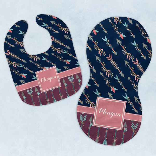 Both our baby bib and burp pad are made up of soft, microfiber velour with a cotton backing. The comfortable and plush material of our bib and burp set is perfect for both baby and parent. We print your design on the microfiber velour face fabric with baby safe ink on your customizable bib and burp cloth to ensure safety for the little one! Our drool bib also comes with a Velcro clasp for safe and easy wear while the burp cloth is a unique peanut shape that perfectly hugs over the shoulder.