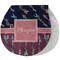 The cool navy blue and mauve really give this design a calming feeling. The two backgrounds have several different kinds of illustrative tribal arrows. Each one has slight variations in its beautiful detail. The soft blush ribbon and frame give a nice accent to both the navy and mauve. Put your very own personalization in the frame to get started.