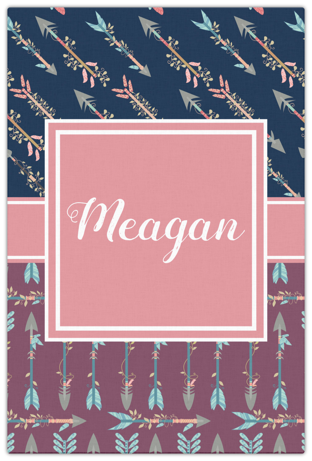 The cool navy blue and mauve really give this design a calming feeling. The two backgrounds have several different kinds of illustrative tribal arrows. Each one has slight variations in its beautiful detail. The soft blush ribbon and frame give a nice accent to both the navy and mauve. Put your very own personalization in the frame to get started.