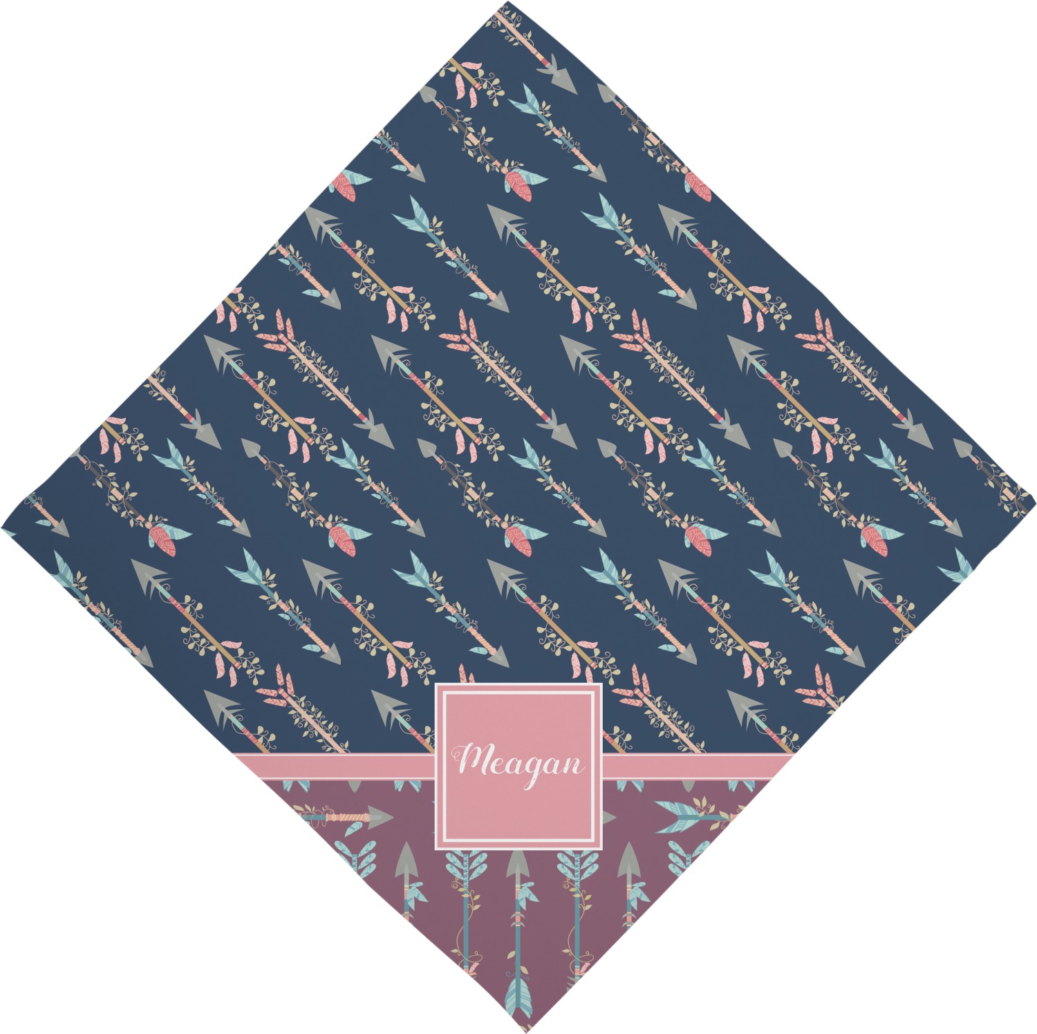 This beautiful pet bandana really is the perfect accessory. It is made from a silky feeling polyester and measures at approximately 23" x 23". Your personalization will be printed on a diagonal, so that you are able to read the personalization when folded into a triangle. This bandana fits best on large dogs, but can be folded smaller if there is no personalized text to fit smaller pets.