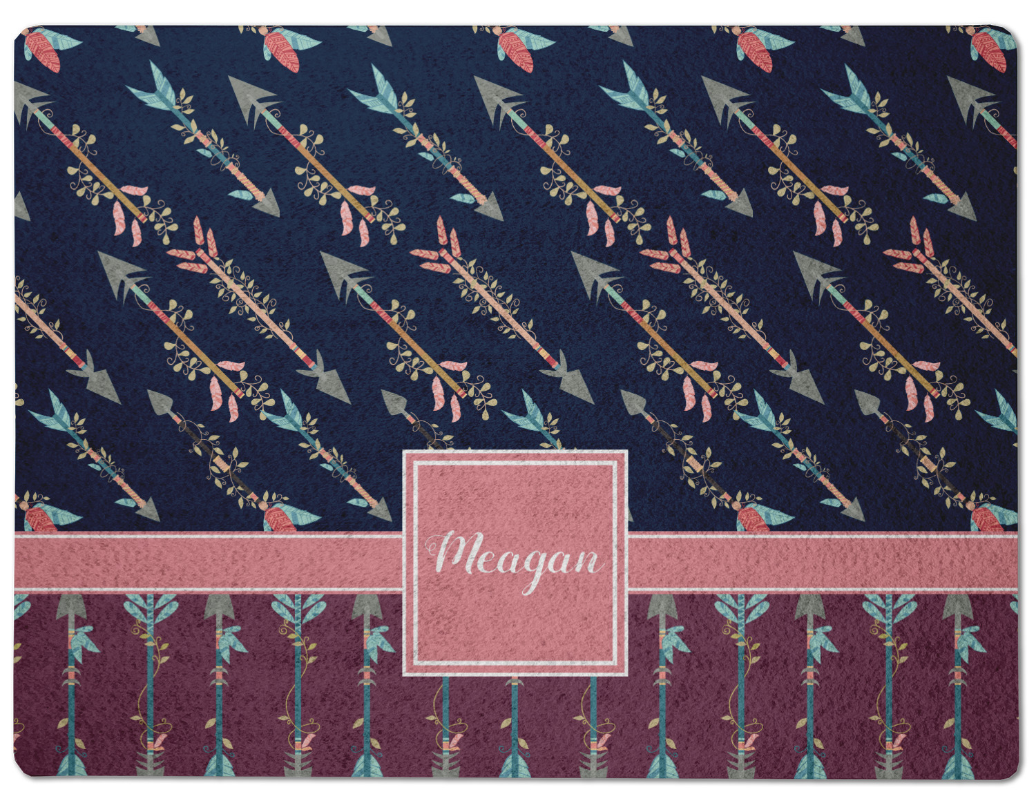 The cool navy blue and mauve really give this design a calming feeling. The two backgrounds have several different kinds of illustrative tribal arrows. Each one has slight variations in its beautiful detail. The soft blush ribbon and frame give a nice accent to both the navy and mauve. Put your very own personalization in the frame to get started.