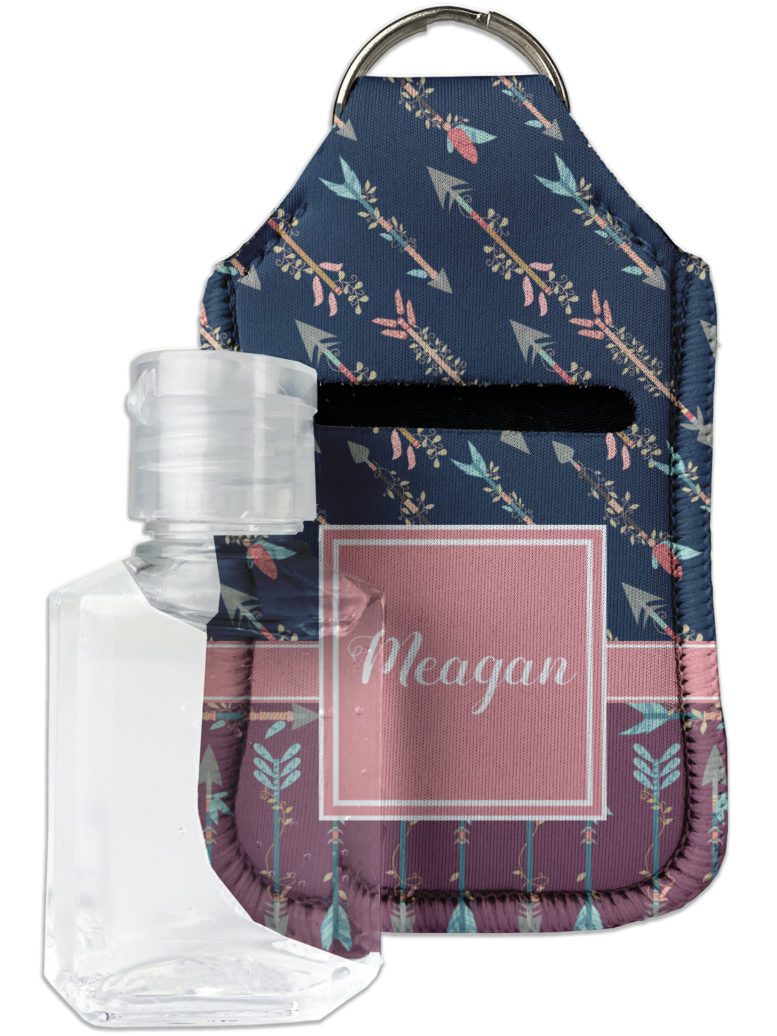 Each hand sanitizer holder comes with its own empty travel-sized, refillable hand sanitizer sure to fit snug in your customized sanitizer case! Our hand sanitizer cases are a durable, yet soft neoprene material sure to last any daily activities or travel agenda. Customize and personalize a hand sanitizer bottle holder with one of our two sizes - small (4.25" x 2.25") or large (5.5" x 2.5"). Each travel sanitizer holder comes with a keyring for attachment on bags, keys, or more!