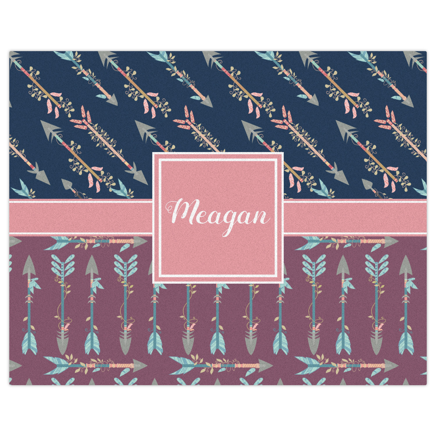 The cool navy blue and mauve really give this design a calming feeling. The two backgrounds have several different kinds of illustrative tribal arrows. Each one has slight variations in its beautiful detail. The soft blush ribbon and frame give a nice accent to both the navy and mauve. Put your very own personalization in the frame to get started.