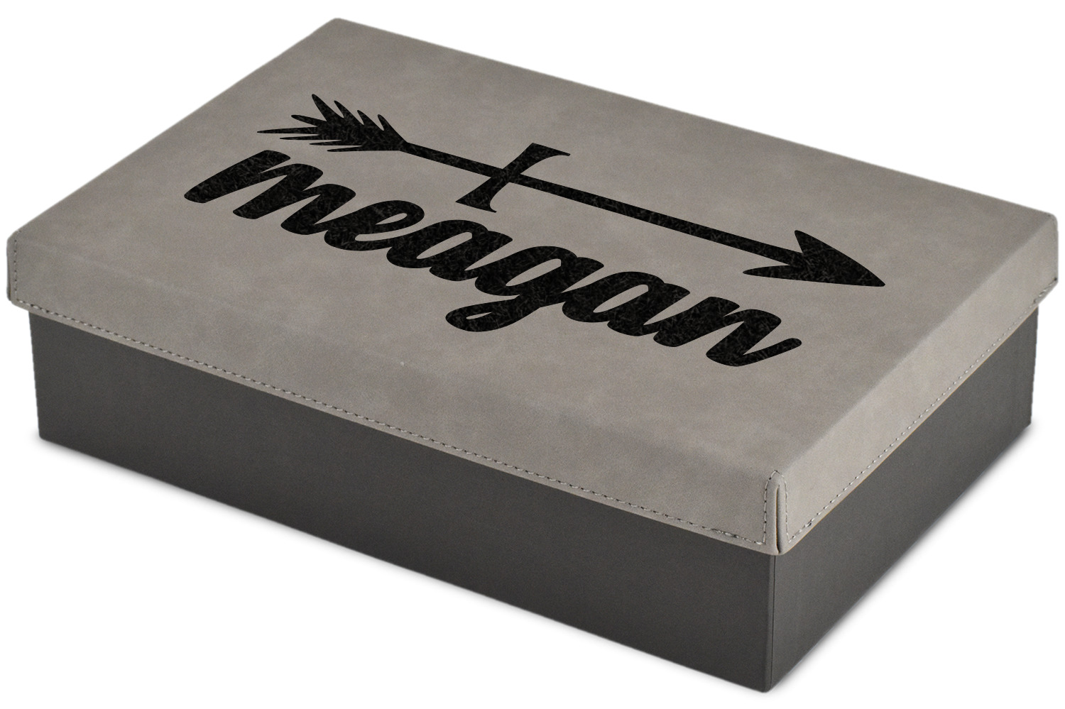 These gift boxes are available in 3 different sizes to accommodate various sized gifts. Available in gray as a neutral color for any occasion as well as to showcase your design boldly. Engraved with a laser this high quality paper board and faux leather gift box is unique and makes any gift stand out.