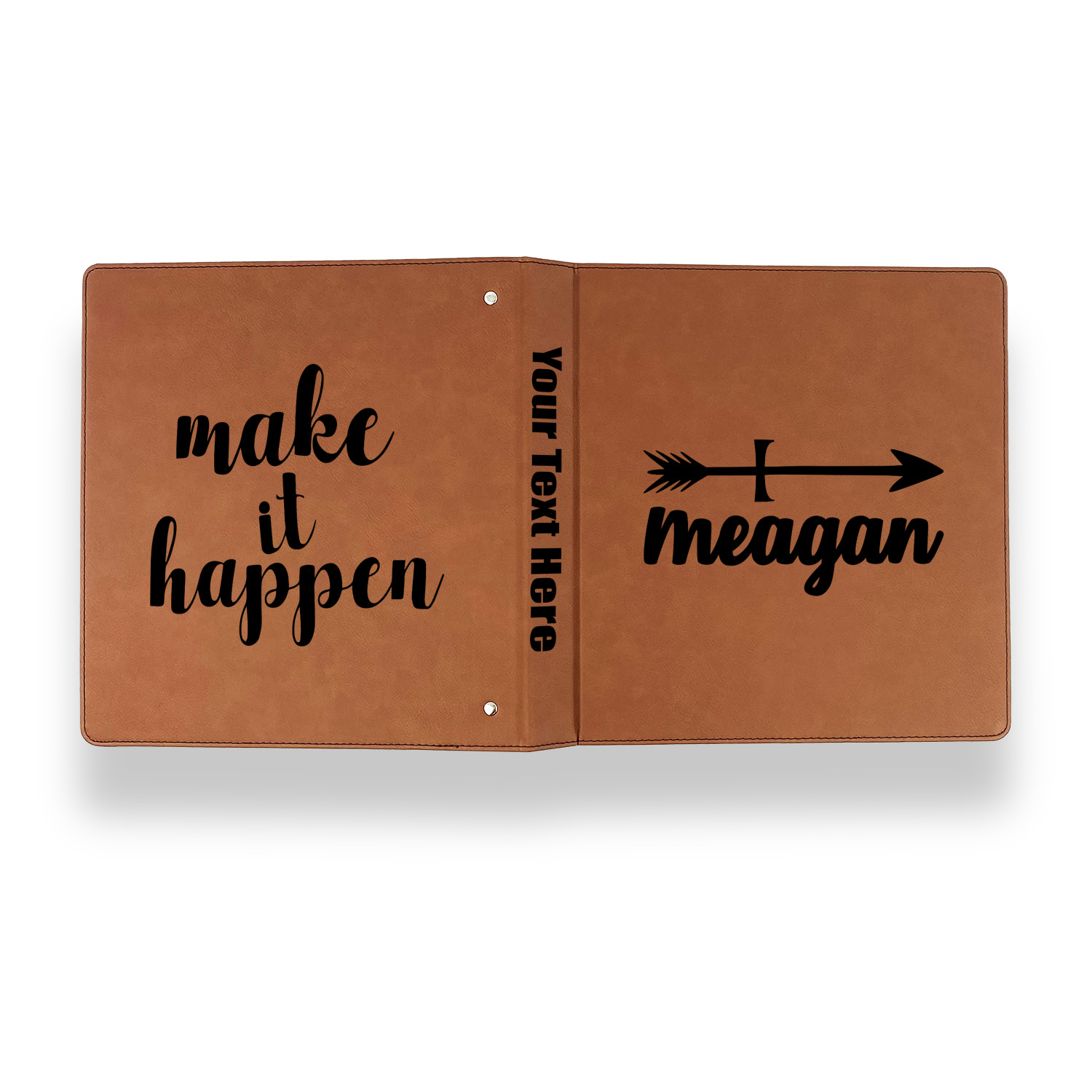 Made from a high quality faux leather covering, these binders are laser engrave with your choice of personalization. The 1" d-rings inside hold up to 175 sheets of standard 8.5" x 11" US Letter or notebook paper or 8.27" x 11.69" A4 size paper.