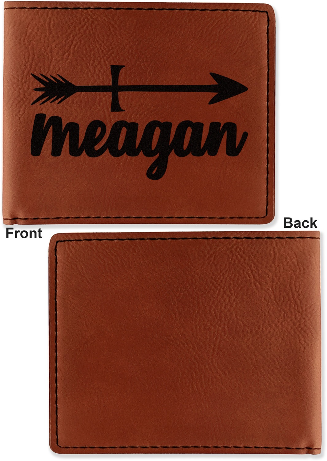 Your bifold wallet will be personalized by laser engraving, which will be a black color on the wallet. Choose a graphic, text, or monogram to personalize your wallet. There are thousands of choices in our design center.