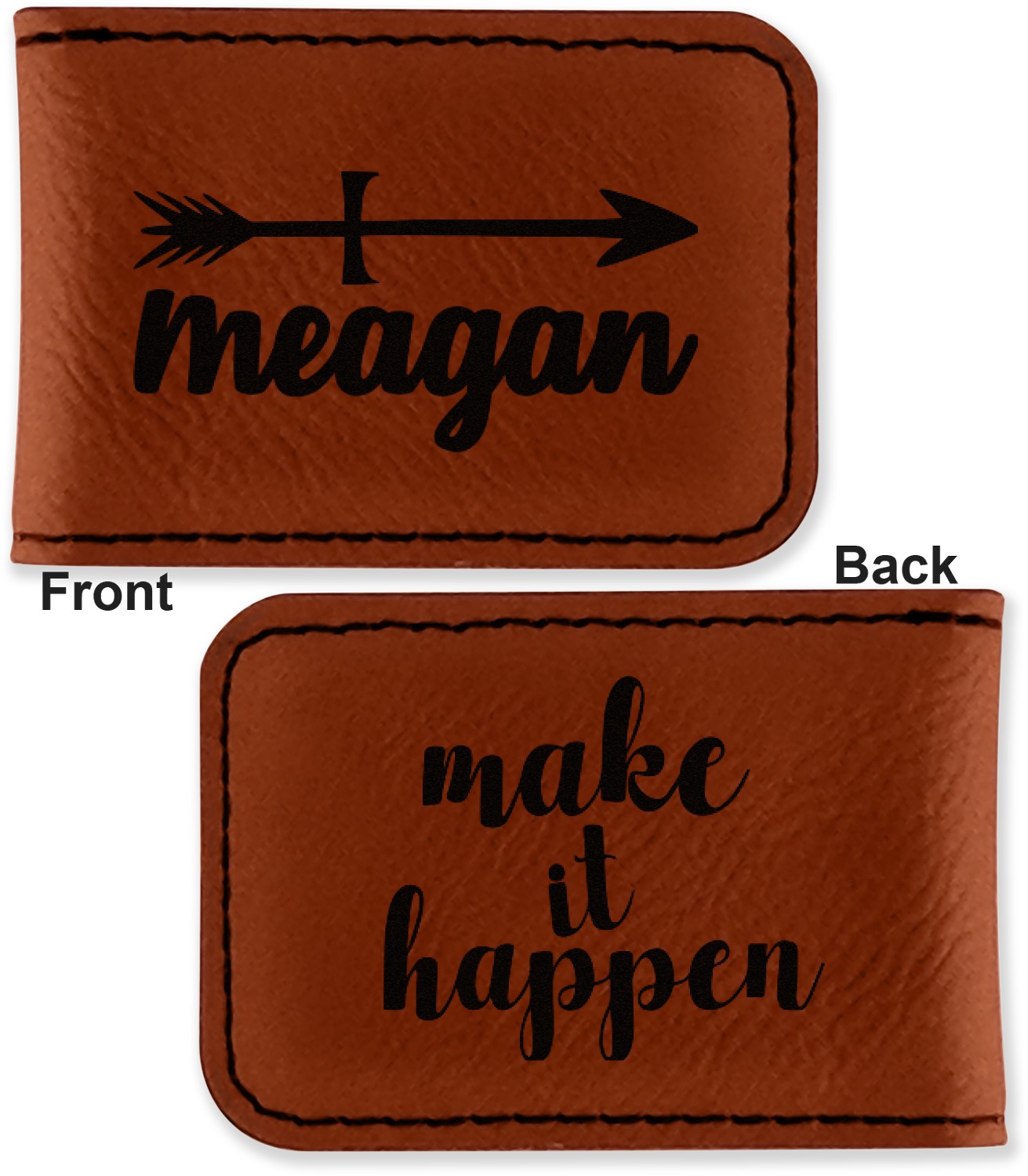 Your money clip will be laser engraved so that the design you choose will come out black. Find a fun graphic, monogram, or font to use to personalize your money clip either on just the front or the front and the back.