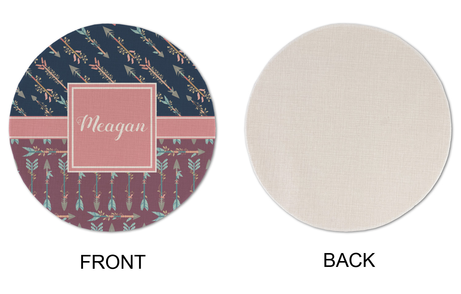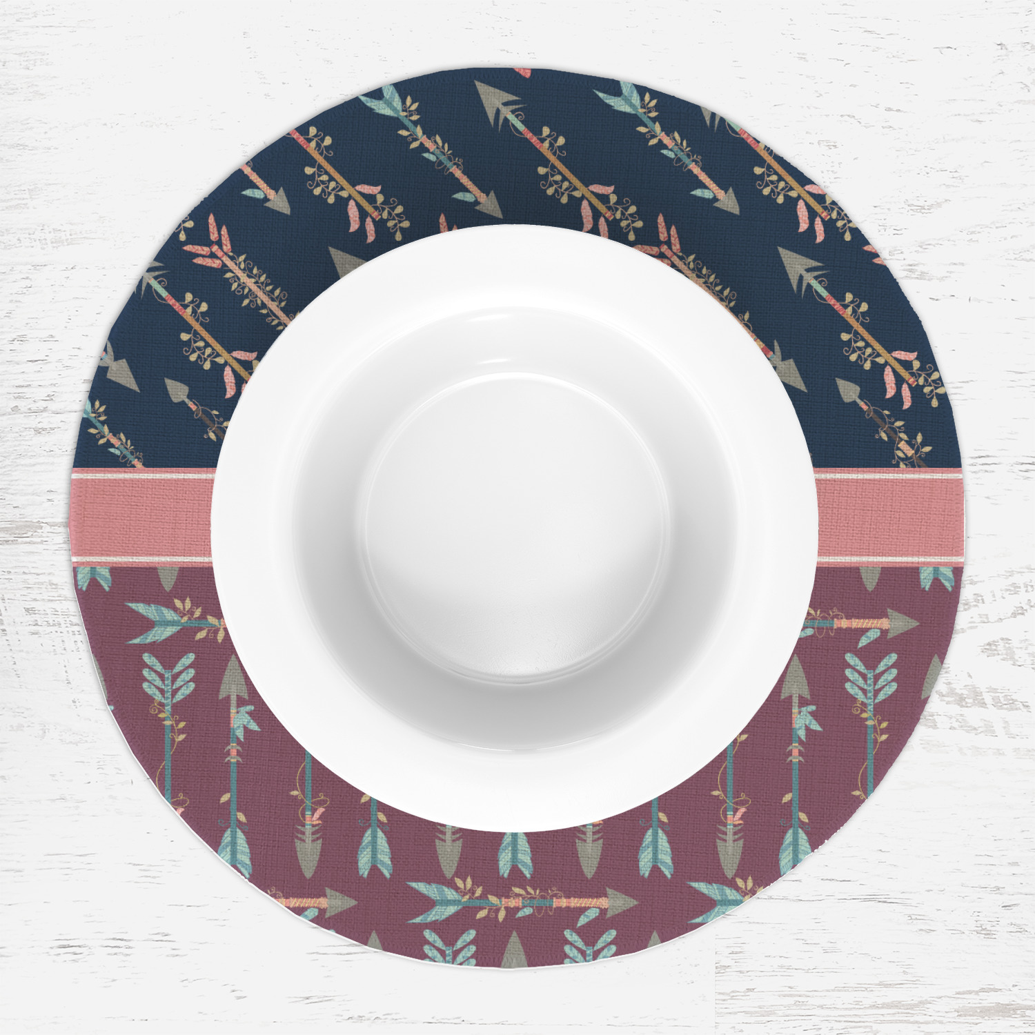 The cool navy blue and mauve really give this design a calming feeling. The two backgrounds have several different kinds of illustrative tribal arrows. Each one has slight variations in its beautiful detail. The soft blush ribbon and frame give a nice accent to both the navy and mauve. Put your very own personalization in the frame to get started.