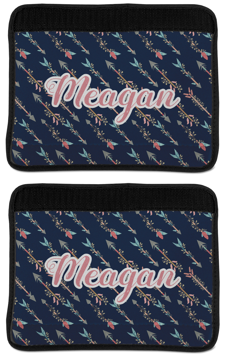 Made from neoprene, our seat belt strap covers wrap around the belt itself and have a Velcro tab for easy attachment and closure. The belt's edges are trimmed with a black polyester for a secure finish. Each cover is 9.5 by 7 inches when open and 9.5 by 2.5 inches when closed. We print your personalized design on the face of the seat belt pad.