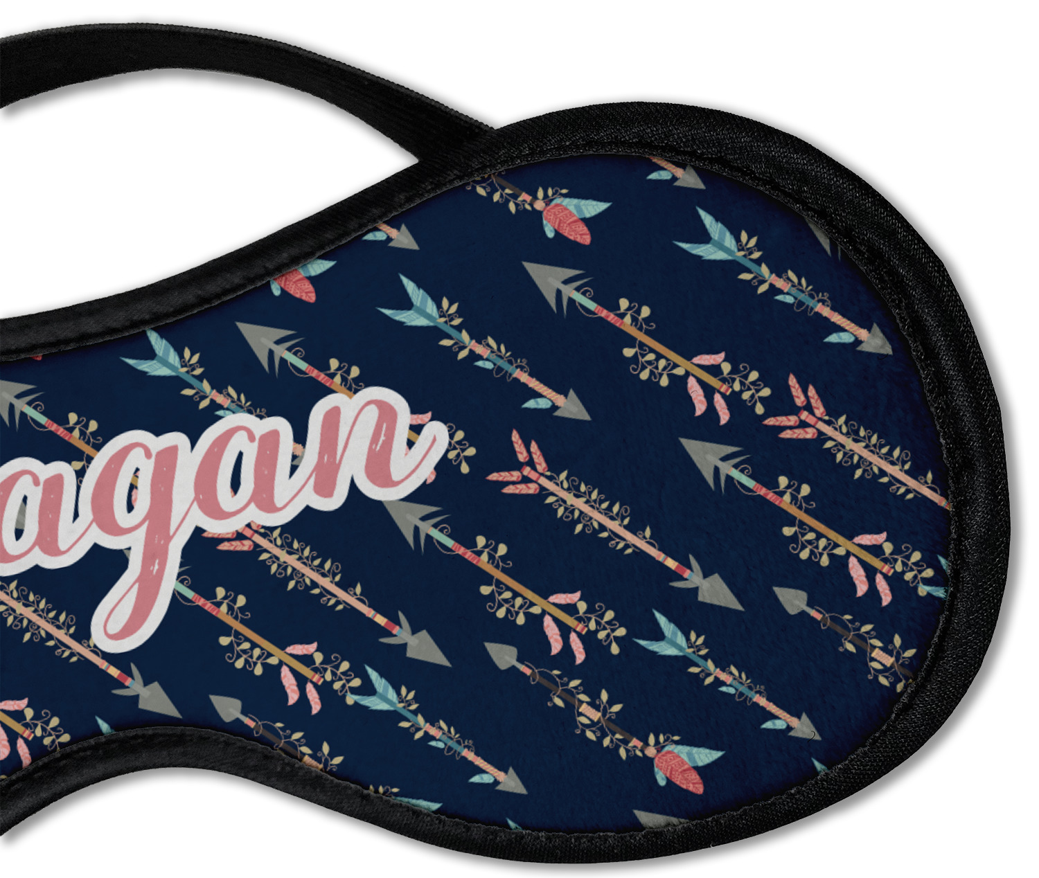 This eye mask has a super soft fleece on the back so that your face will feel snug. The front is personalized by you! There is a black elastic band that goes behind your head. The band is stretchy enough to be a one size fits most. The eye mask comes in 2 sizes: small for regular adult sizes and large for a larger area coverage. The black lining and elastic give it a nice finished look. You will never sleep or nap more comfortably than with this eye mask. These are great for napping when traveling or just at home!