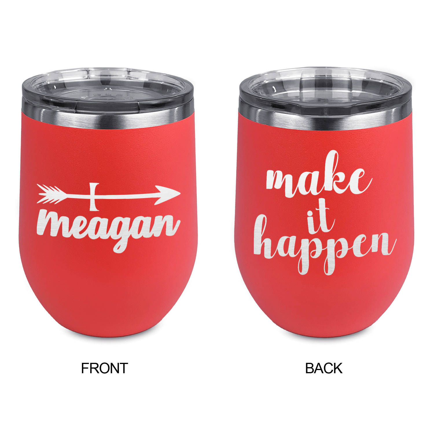 Design your wine tumbler with a cool graphic or quote. Even put your initials or monogram! These cups are laser engraved, which looks extra sharp on the metal tumbler.