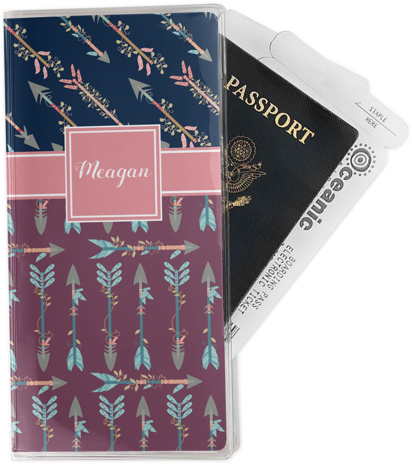 This document holder is really sturdy and has your personalized design inserted right behind all of your nifty pockets, so you can see it on the front and back covers. There are two large pockets and two shorter pockets inside. The larger pockets are tall enough to keep your boarding pass nice and straight. The smaller pockets (on top of the large pockets) are large enough to fit your passport, credit card, or ID.