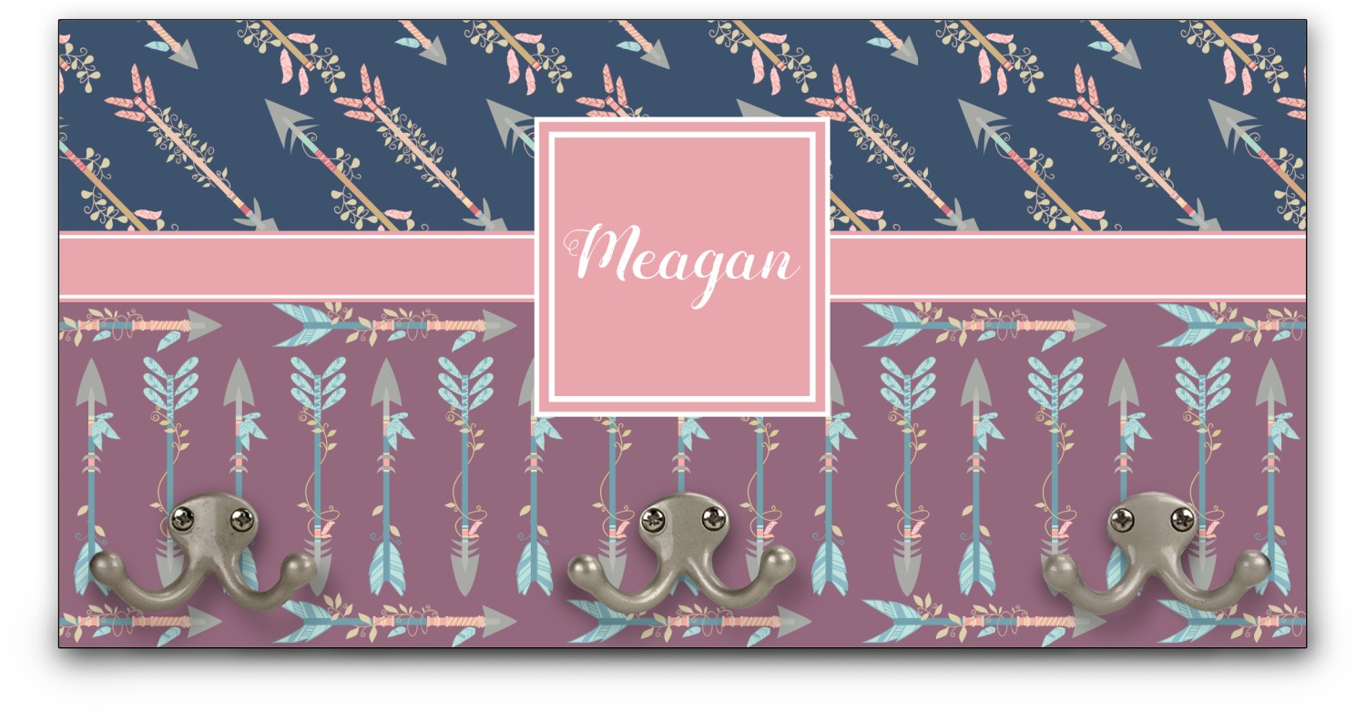 This coat rack is the perfect way to add some personality to your wall or entryway. The board is made of a strong maple that is approximately 16" x 8". The three 2-prong hooks are a sturdy metal that have three screws attaching them to the board. Your design is printed right onto the front of the board while the back and sides are a simple black.