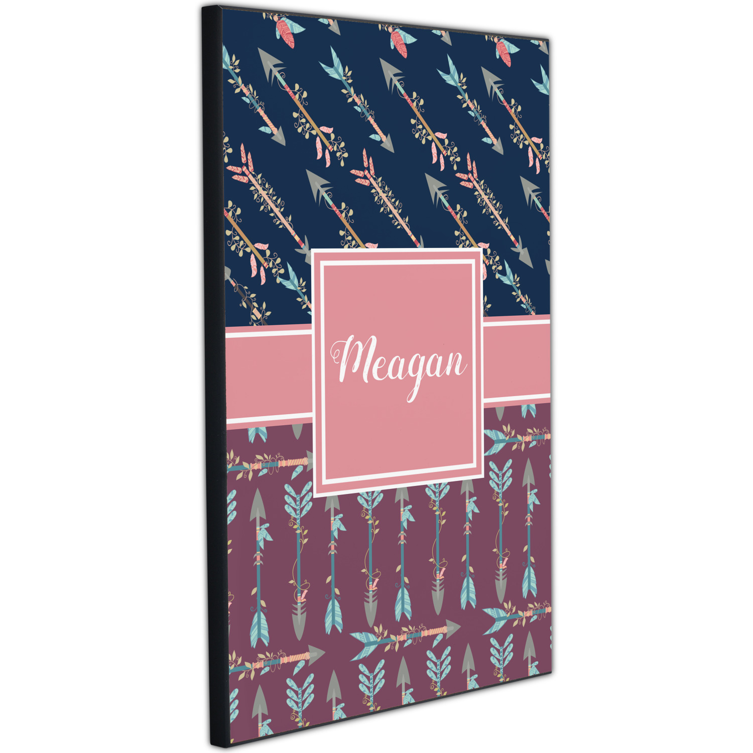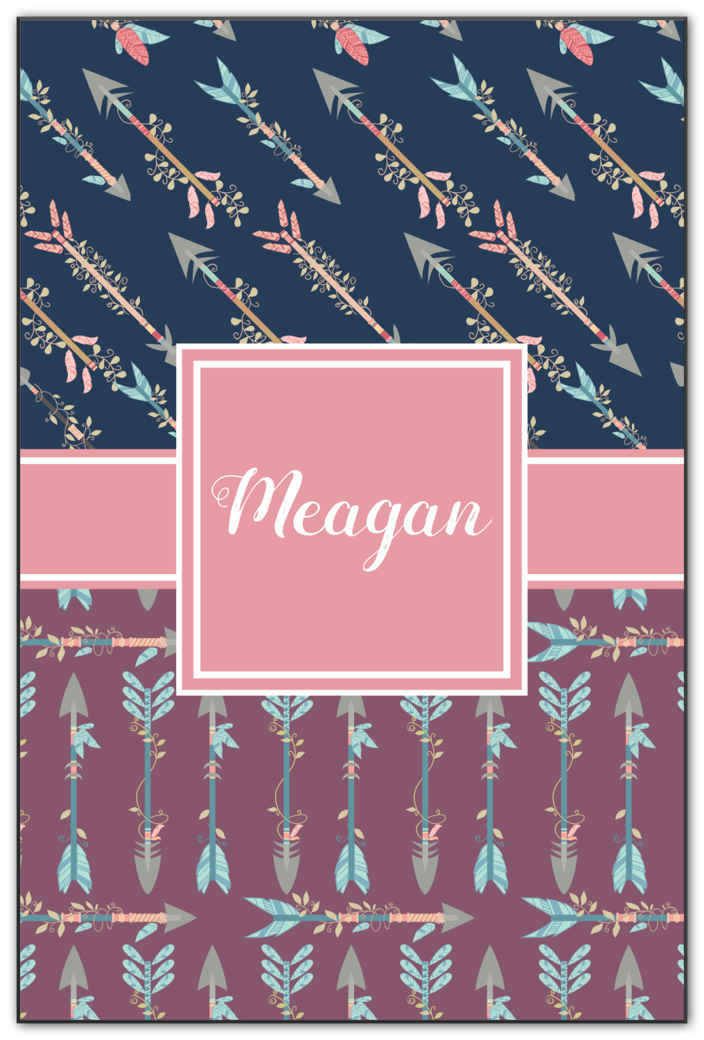 The cool navy blue and mauve really give this design a calming feeling. The two backgrounds have several different kinds of illustrative tribal arrows. Each one has slight variations in its beautiful detail. The soft blush ribbon and frame give a nice accent to both the navy and mauve. Put your very own personalization in the frame to get started.