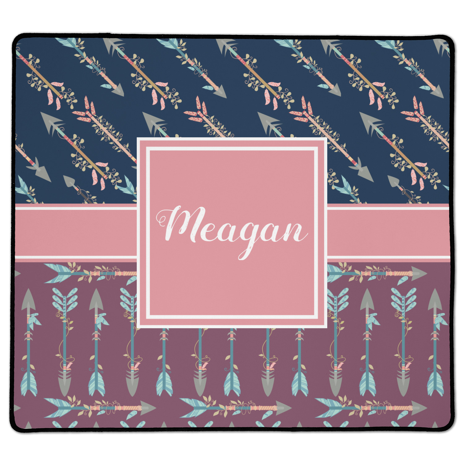 The cool navy blue and mauve really give this design a calming feeling. The two backgrounds have several different kinds of illustrative tribal arrows. Each one has slight variations in its beautiful detail. The soft blush ribbon and frame give a nice accent to both the navy and mauve. Put your very own personalization in the frame to get started.