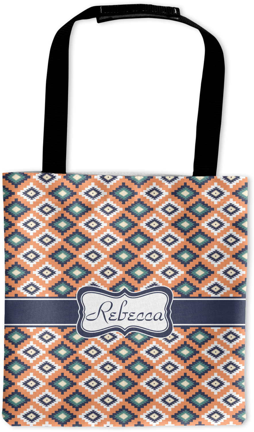 This fun, tribal design features stitched diamonds in cream and blue, scattered across a pale orange background. The effect is rather mesmerizing.