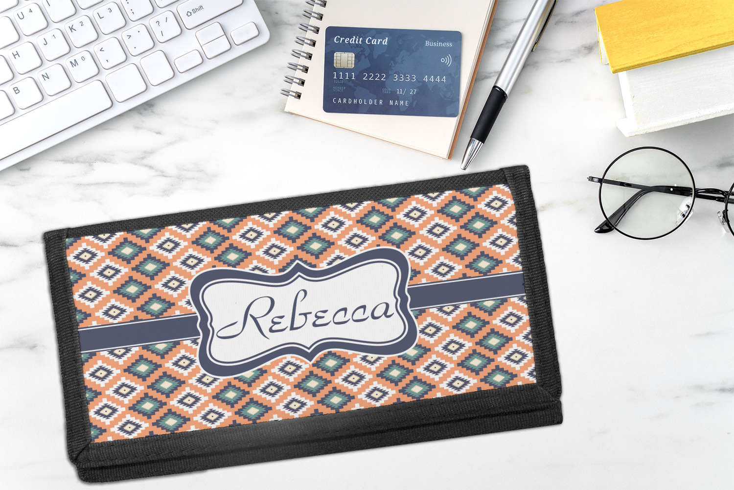 The checkbook cover is made of a durable canvas and the front flap is decorated with a vibrant design of your choosing. With 4 slots for credit cards or IDs, and 2 compartments for your checkbook register, cash, receipts, business cards, and more; this checkbook cover could easily double as a wallet.