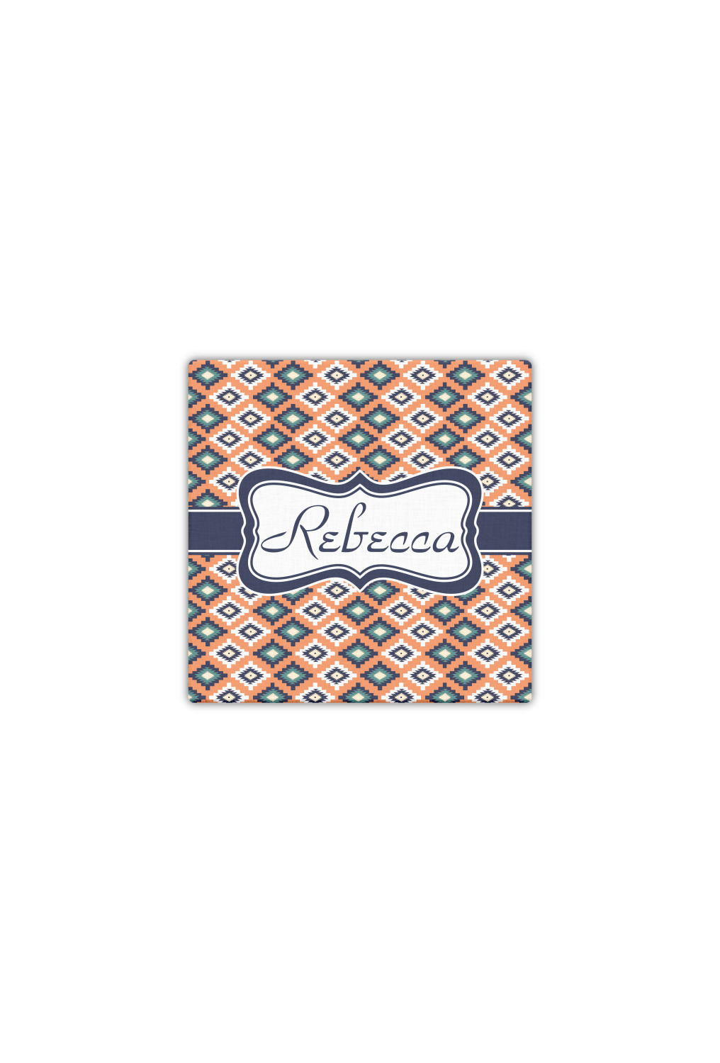 This fun, tribal design features stitched diamonds in cream and blue, scattered across a pale orange background. The effect is rather mesmerizing.