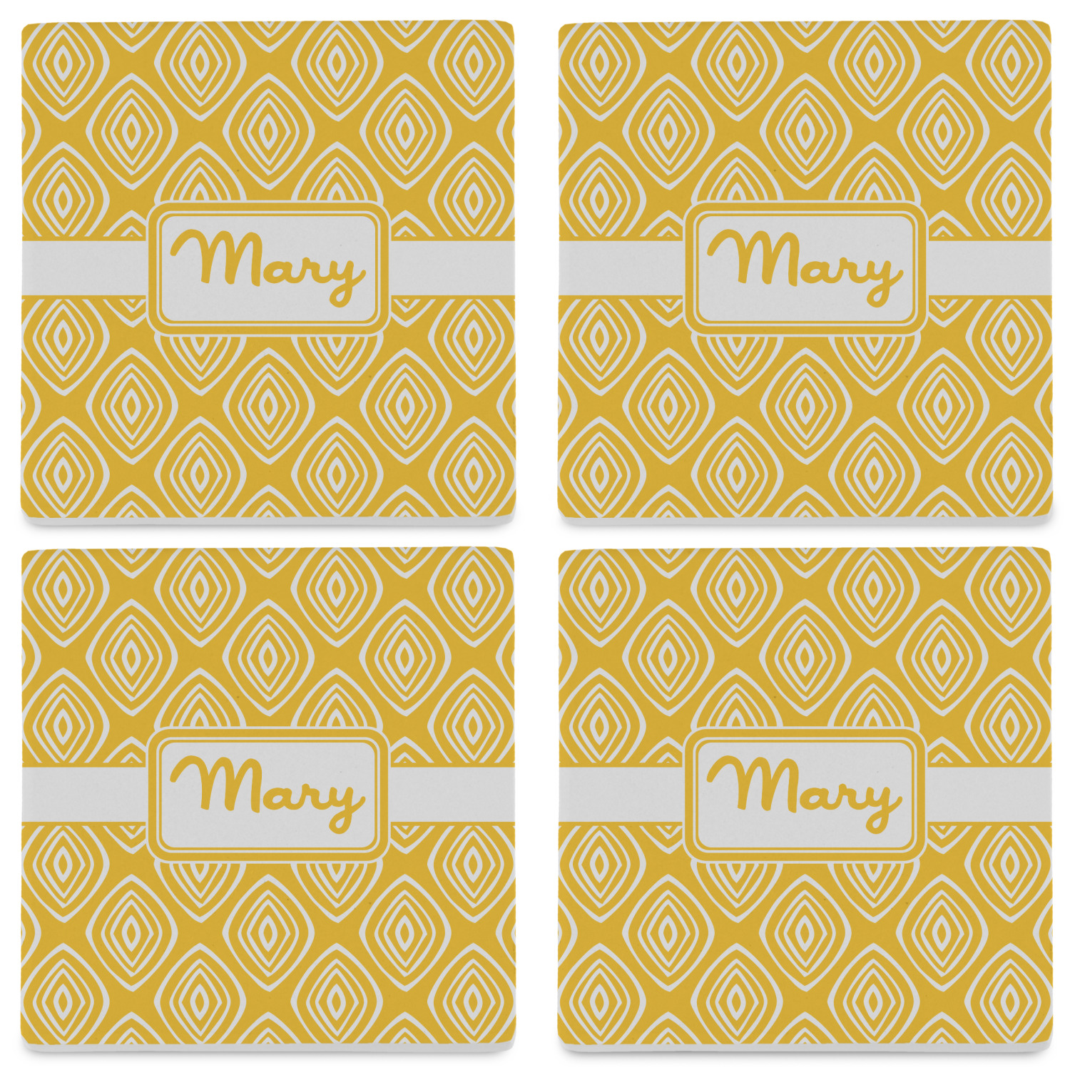 By default, the 4 coasters all have the same design on them, however, you can change that and have a different design on each one of the 4 coasters. The choice is yours.