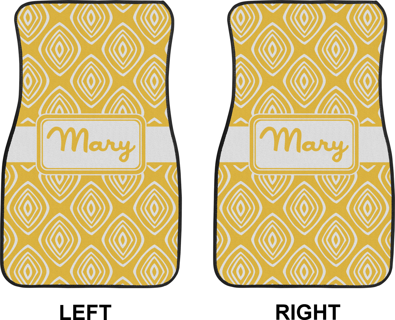 We craft our auto floor mats mats from polyester, apply a black finish to the edges, and lined at the bottom to prevent slippage. These mats protect your floors from grass, mud, and any accidental spills. We display your personalized design on the front face of each mat. The sizes of these car floor liners are standardized to provide a versatile fit for all vehicles. The front rows car mats measure at 17 by 26.5 inches, while the back rows measure at 17 by 13 inches. We sell three packages of car floor mats. You can purchase a pair of front row car mats, a pair of back row car mats, or a set of front row and back row car mats. To make an informed purchase, we recommend measuring the surface area of your car floors.