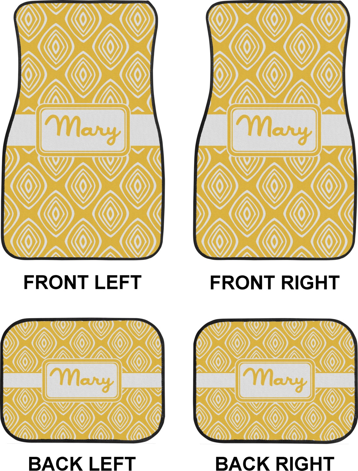 We craft our auto floor mats mats from polyester, apply a black finish to the edges, and lined at the bottom to prevent slippage. These mats protect your floors from grass, mud, and any accidental spills. We display your personalized design on the front face of each mat. The sizes of these car floor liners are standardized to provide a versatile fit for all vehicles. The front rows car mats measure at 17 by 26.5 inches, while the back rows measure at 17 by 13 inches. We sell three packages of car floor mats. You can purchase a pair of front row car mats, a pair of back row car mats, or a set of front row and back row car mats. To make an informed purchase, we recommend measuring the surface area of your car floors.