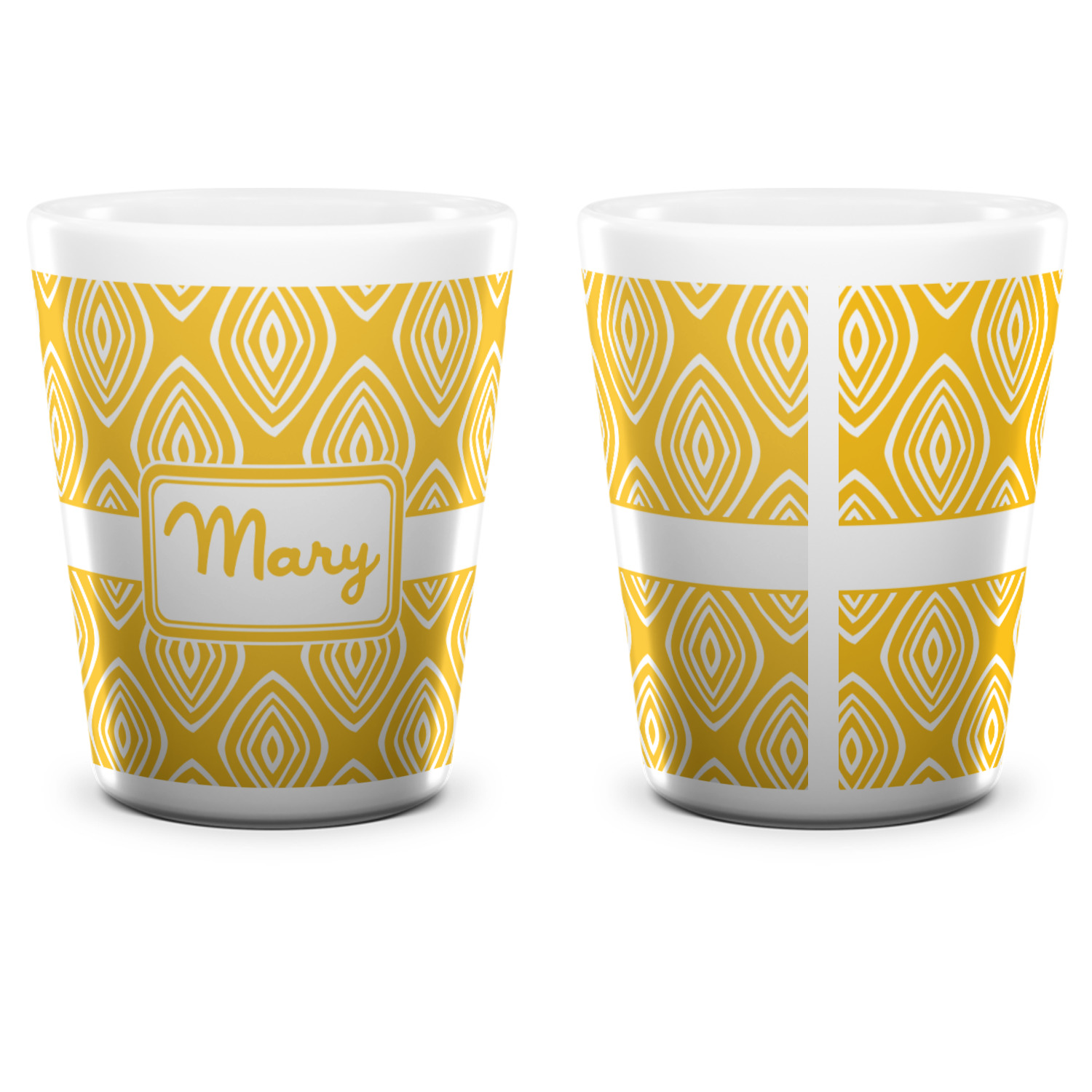 Made from ceramic these shot glasses are printed in full color with the design of your choice. These are a standard 1.5oz size and stand 2.25" tall. Available in a full white ceramic or a two-tone with a black color inside the shot glass. Buy a single or a set of 4, all of which can be designed separately to get you just what you want and need.