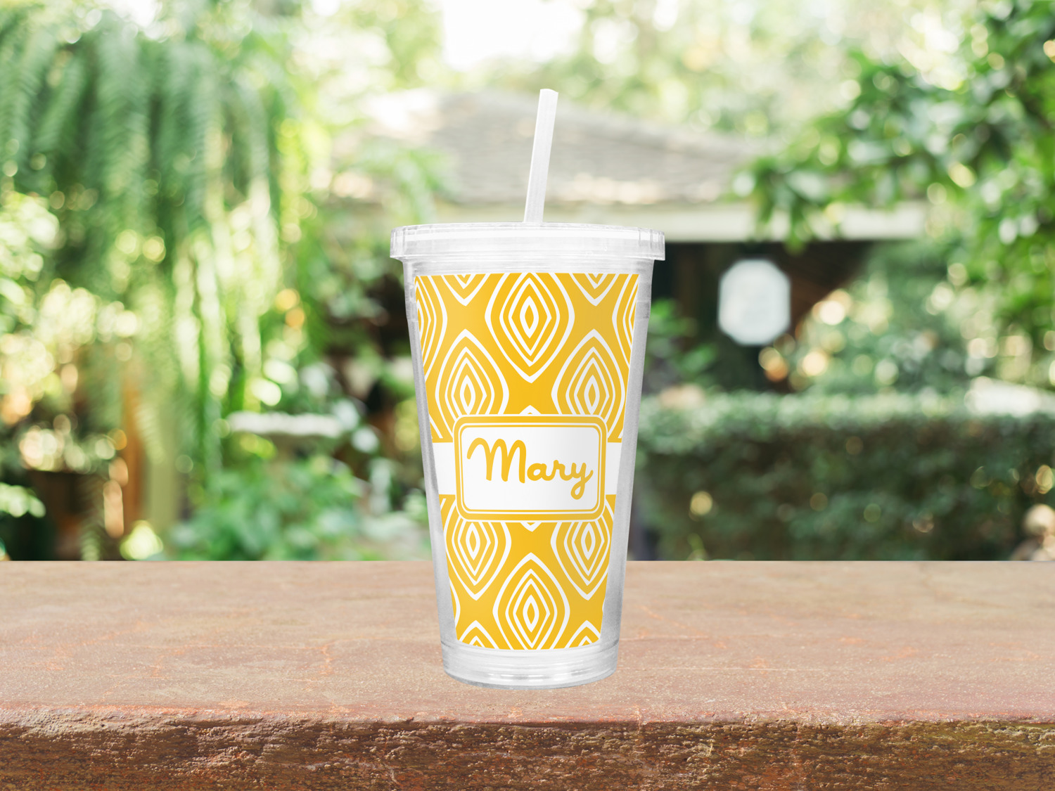 These tumblers are customized for you with a printed insert between the two walls of the cup. The lid screws on tight and helps to keep your drink cold.