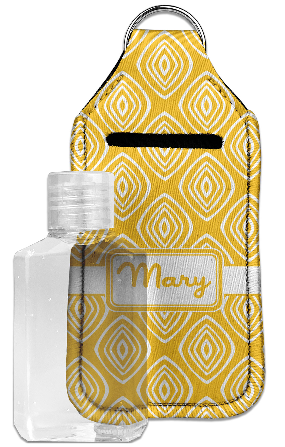 Each hand sanitizer holder comes with its own empty travel-sized, refillable hand sanitizer sure to fit snug in your customized sanitizer case! Our hand sanitizer cases are a durable, yet soft neoprene material sure to last any daily activities or travel agenda. Customize and personalize a hand sanitizer bottle holder with one of our two sizes - small (4.25" x 2.25") or large (5.5" x 2.5"). Each travel sanitizer holder comes with a keyring for attachment on bags, keys, or more!