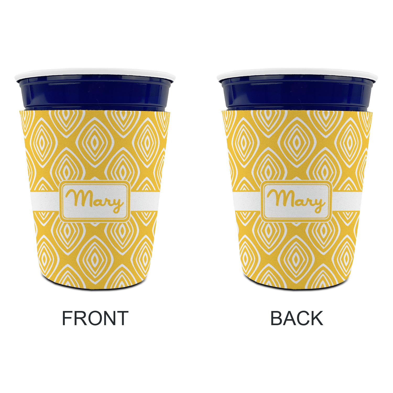 Made from neoprene with a polyester outer fabric and sewn seams, these premium quality party cup sleeves are very durable and will hold up to heavy use. They are available in 2 styles - with a bottom or just a sleeve to go around the outside of the tapered cup. The sleeve covers are about 4" tall and cover about 90% of the classic 16 oz. Solo cup.