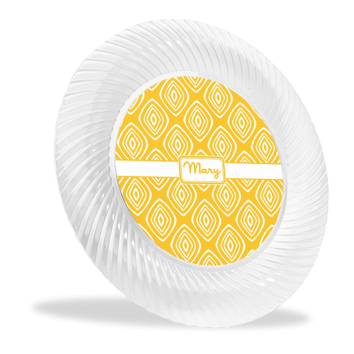 Made from a beautiful clear plastic plate as a base, your design is printed to the underside of the plate. The outside of these disposable plates has a classic swirl texture to it for a high quality look and feel.