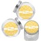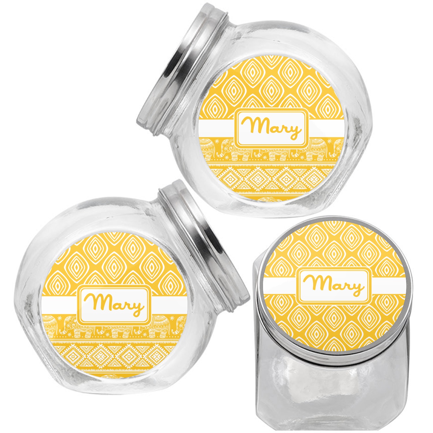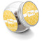 This treat jar is an excellent way to store treats for your favorite canine or feline. Moreover, their delicate, classy appearance makes them a tasteful addition to your countertop's décor. Crafted from clear glass, its unique construction and silver metal, screw-on lid allows for quick and easy access. Three, permanent, vinyl stickers are applied to both sides of the jar and lid, presenting your personalized design. The base of this glass, dog treat jar is 3.4" x 4.75", and the jar stands at 5" tall. Though on the smaller side, this jar is best suited for smaller treats or training treats.