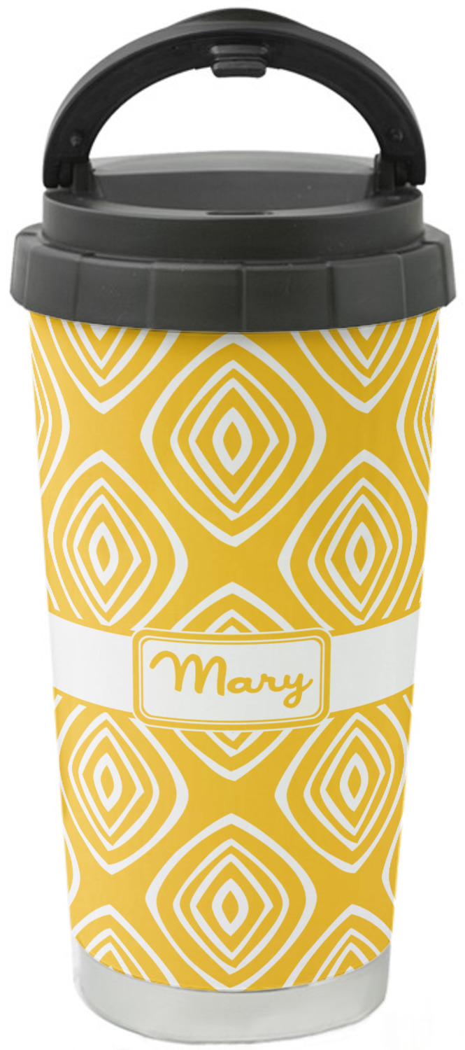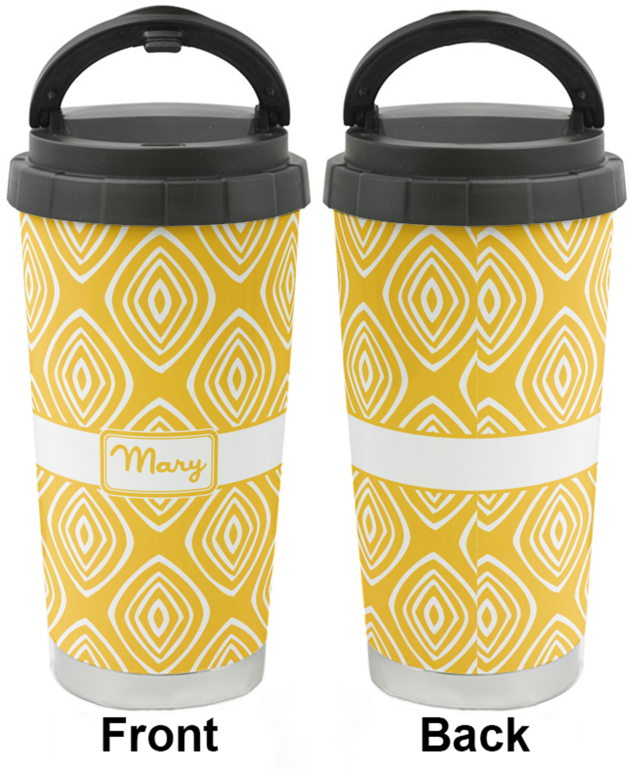 This sleek and tapered 16 oz stainless steel travel cup is a perfect fit in the hand. With the strip of visible stainless steel on the bottom, you'll be feeling classy!