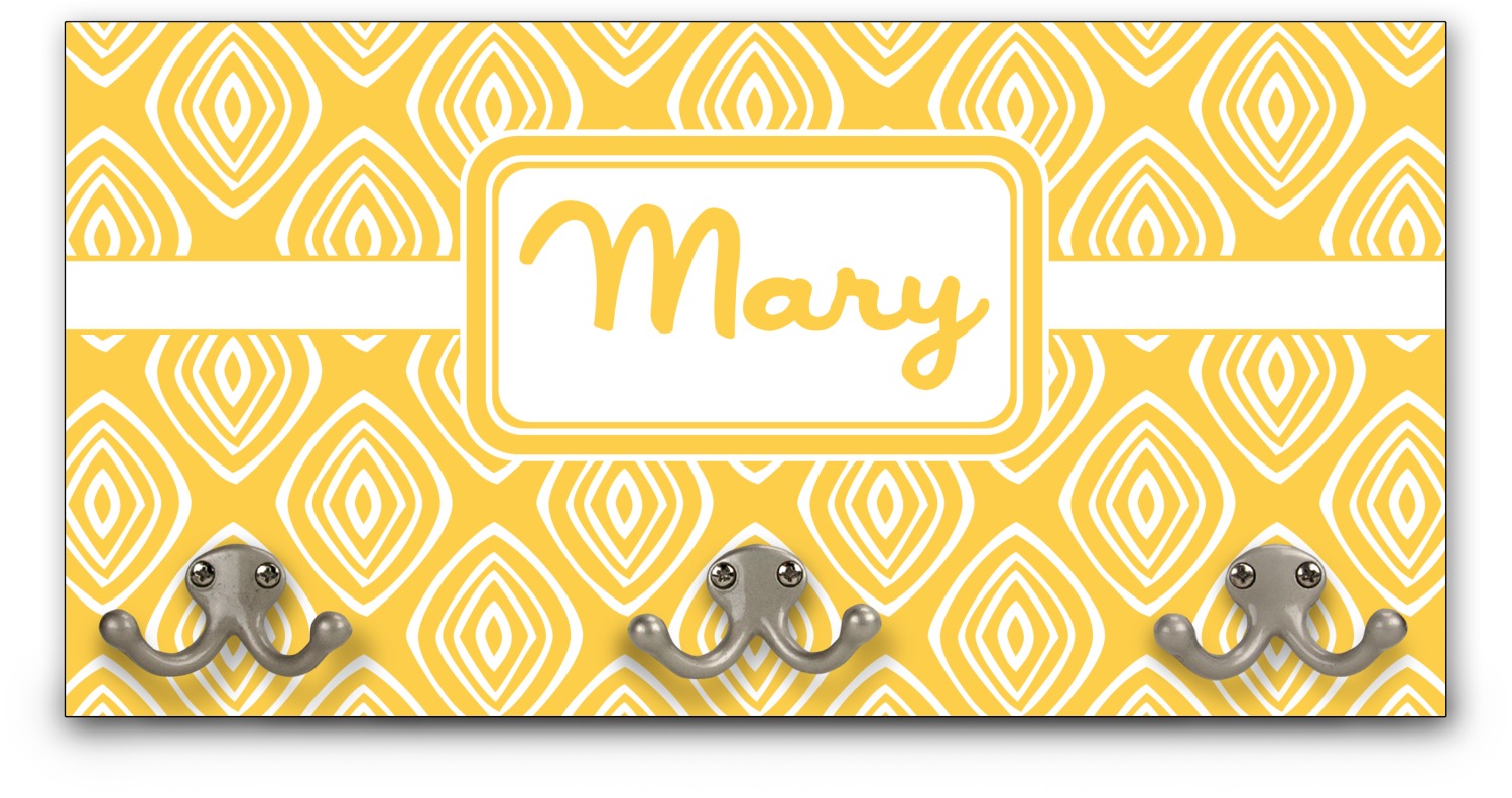 This coat rack is the perfect way to add some personality to your wall or entryway. The board is made of a strong maple that is approximately 16" x 8". The three 2-prong hooks are a sturdy metal that have three screws attaching them to the board. Your design is printed right onto the front of the board while the back and sides are a simple black.