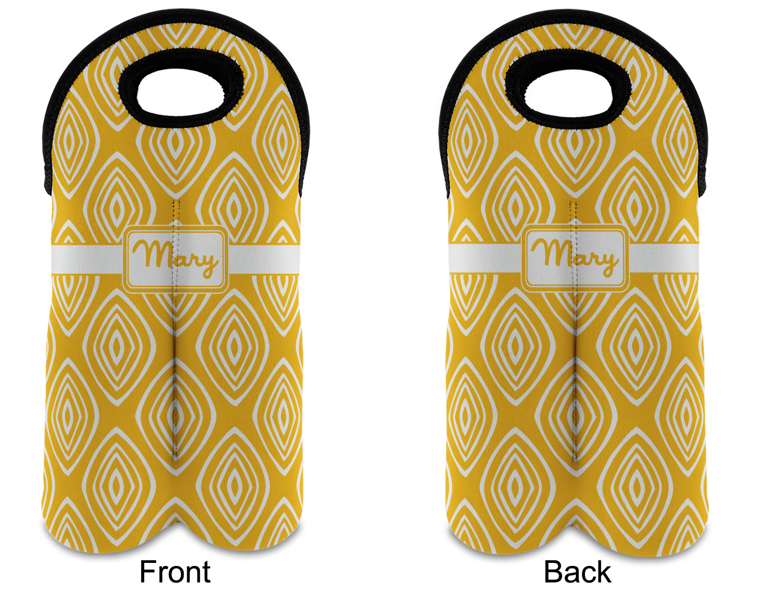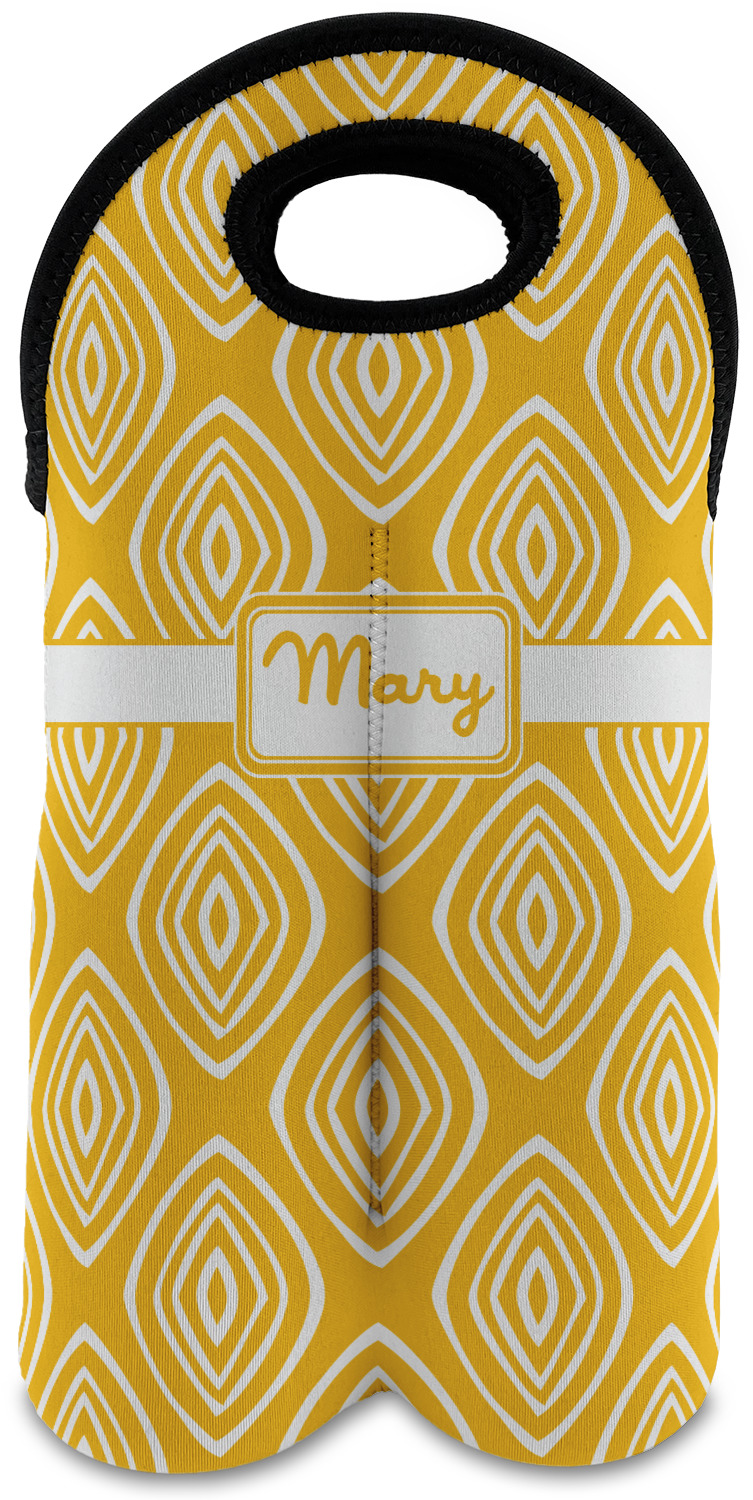 These tote bags are insulated to keep the bottles cold and have a stitched separation down the middle and double handles to keep the two bottles safe and secure during travels.